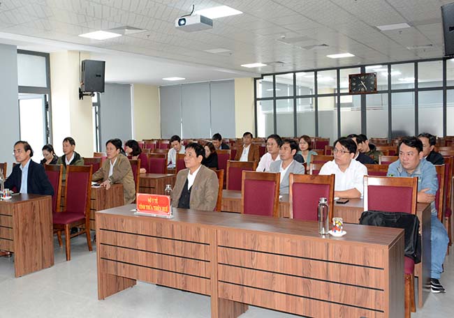Các đại biểu tại điểm cầu sở Y tế nghe Ông Nguyễn Doãn Tú - Tổng Cục trưởng Tổng cục DS-KHHGĐ khai mạc hội thảo tại đầu cầu Hà Nội.