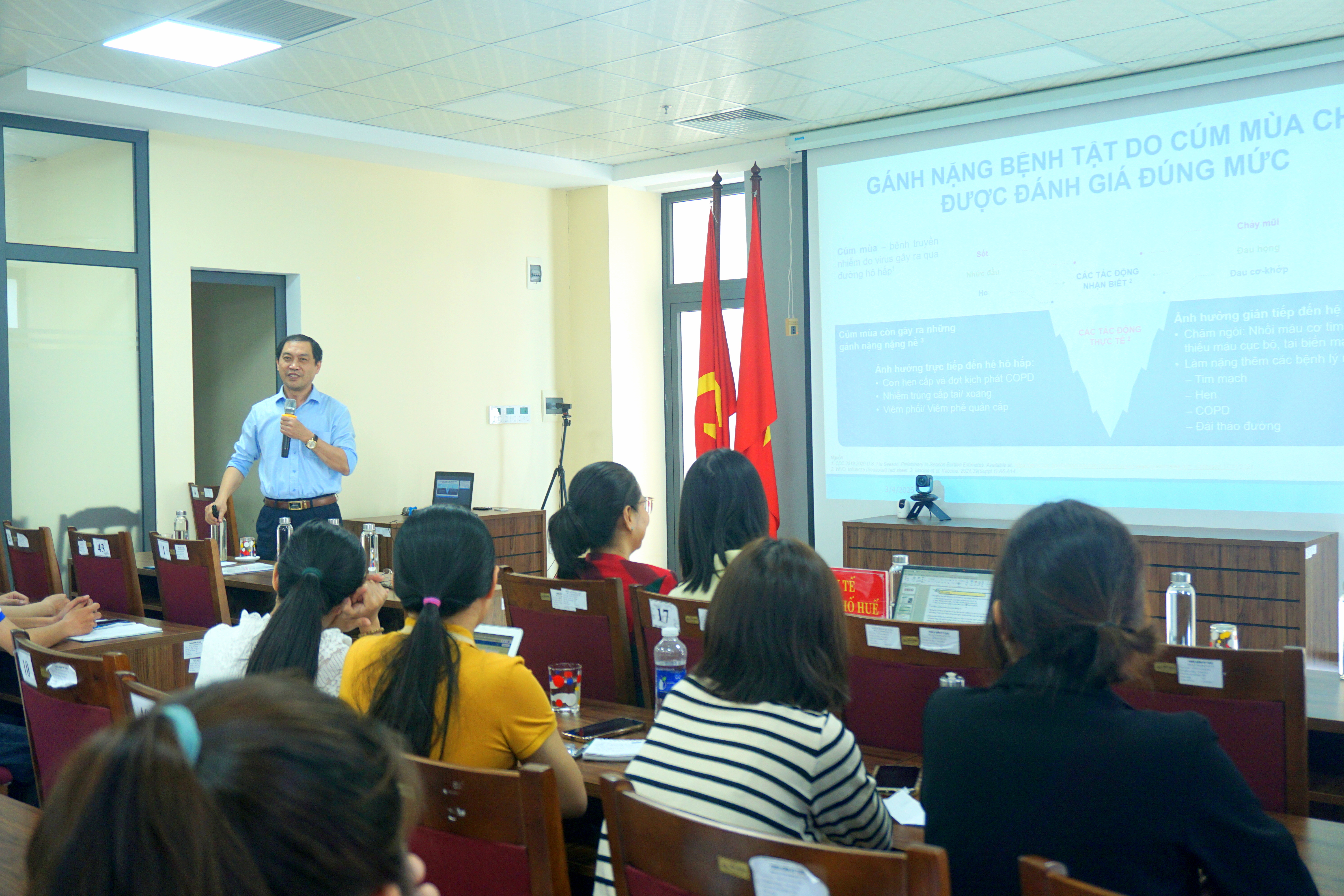 Tại buổi hội thảo, các học viên được nghe truyền đạt các nội dung như: Tổng quát và cập nhật về bệnh cúm, công tác phòng ngừa và kiểm soát lây nhiễm cúm mùa ở cộng đồng, các thuốc trong phòng và điều trị cúm, các khuyến cáo đối với Dược sĩ nhà thuốc khi thực hiện bán và tư vấn thuốc điều trị cúm.
