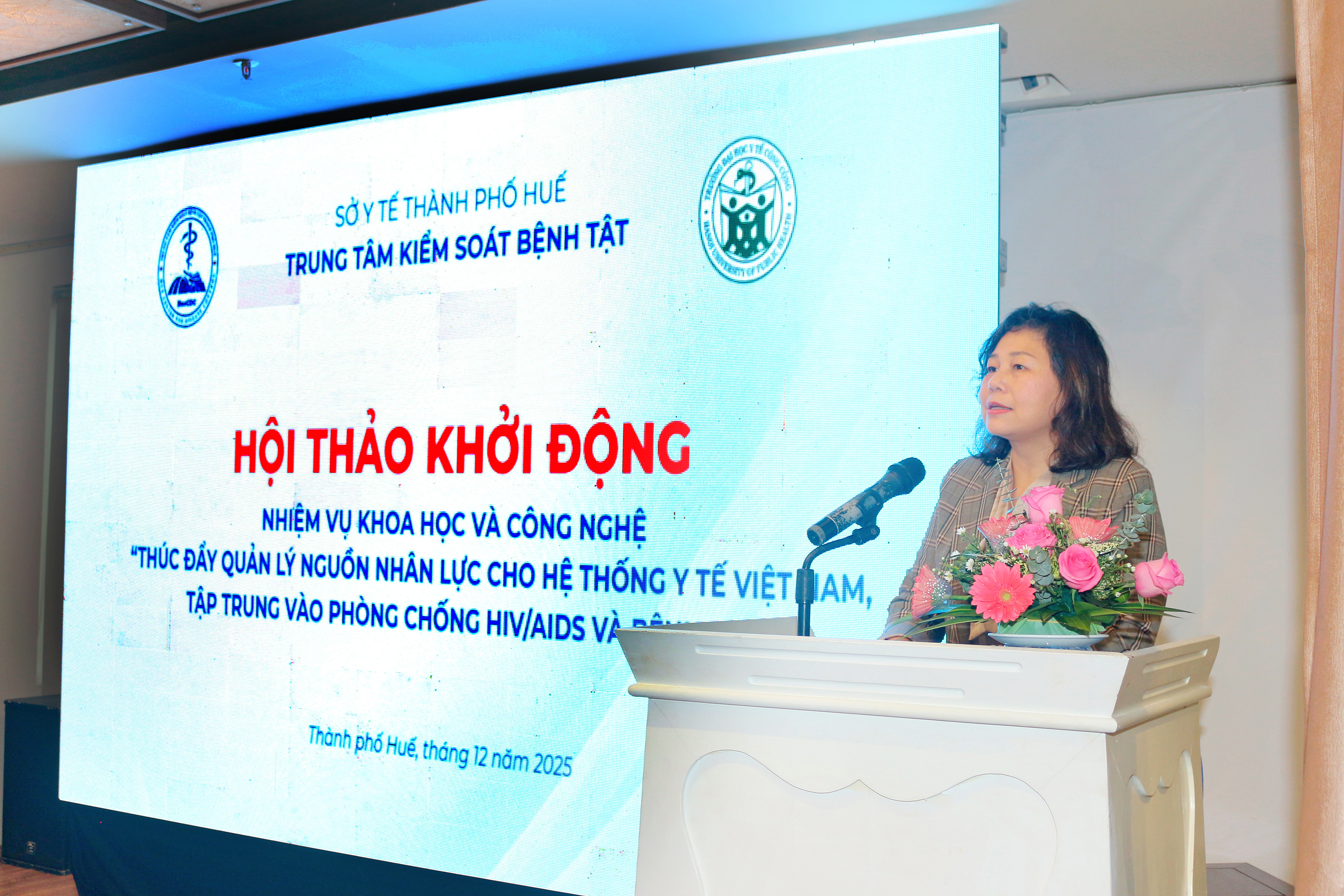 Ngày 22/12/2025, tại thành phố Huế đã diễn ra Hội thảo khởi động triển khai Nhiệm vụ “Thúc đẩy quản lý nguồn nhân lực cho hệ thống y tế Việt Nam, tập trung vào phòng, chống HIV/AIDS và bệnh lao”. Hội thảo nhằm thống nhất kế hoạch, nội dung và phương thức triển khai nhiệm vụ khoa học và công nghệ giai đoạn mới tại địa phương.