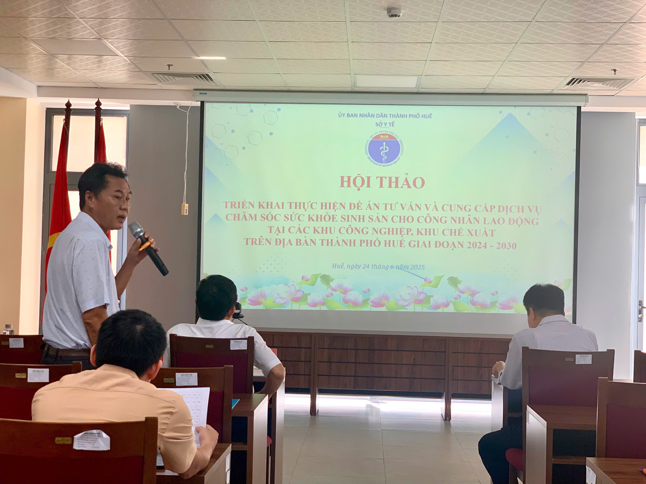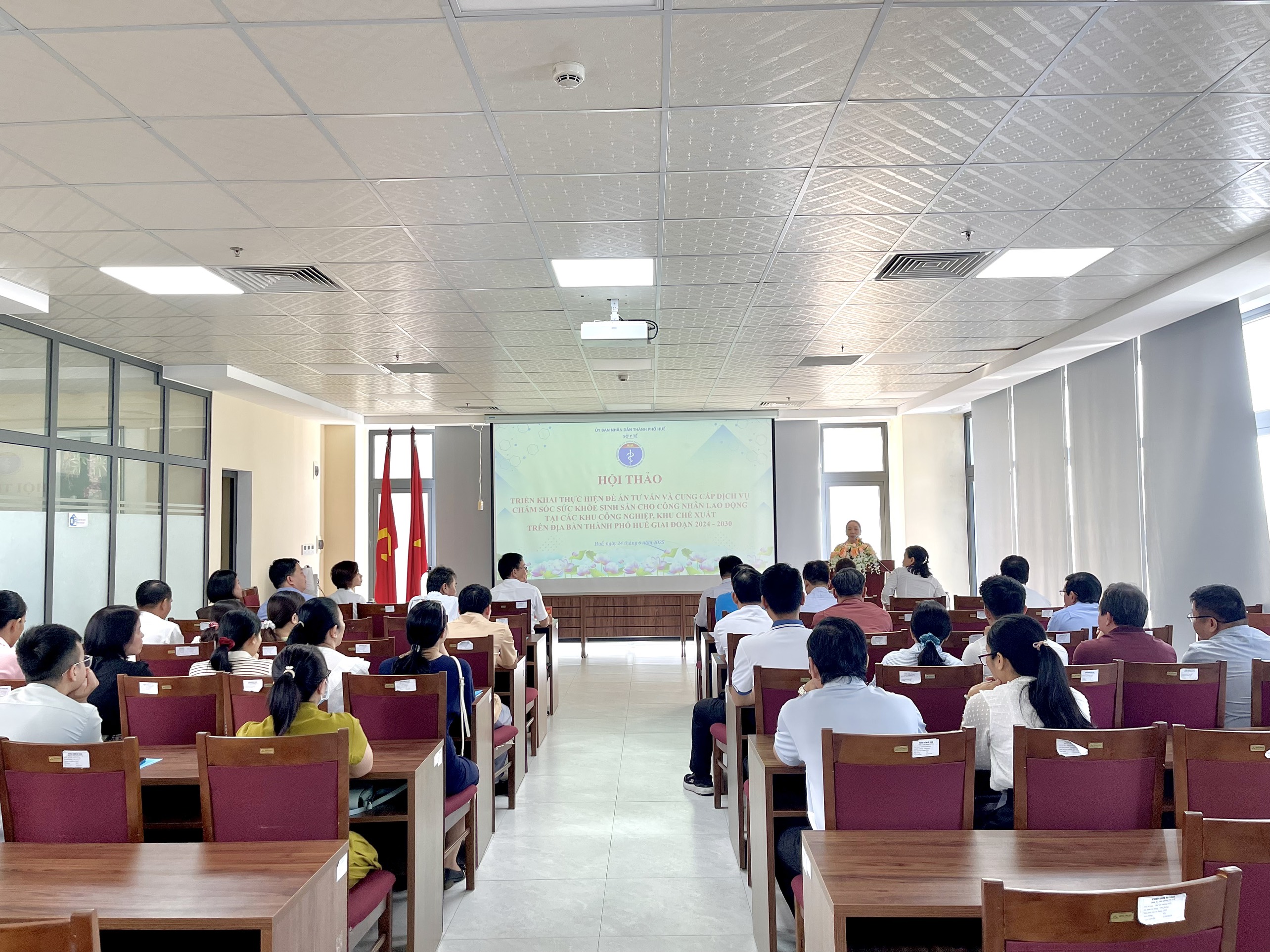 Thực hiện Kế hoạch số 446/KH-UBND ngày 09/12/2024 của UBND tỉnh Thừa Thiên Huế (nay là thành phố Huế) về việc Thực hiện Đề án Tư vấn và cung cấp dịch vụ chăm sóc sức khoẻ sinh sản cho công nhân lao động tại các khu công nghiệp, khu chế xuất trên địa bàn. Ngày 24/6/2025, Sở Y tế tổ chức hội thảo phổ biến, triển khai Đề án "Tư vấn và cung cấp dịch vụ chăm sóc sức khỏe sinh sản cho công nhân lao động tại các khu công nghiệp, khu chế xuất giai đoạn 2024-2030".Tham dự và chủ trì hội thảo có ThS.BSCKII Hoàng Trọng Quý - Phó Giám đốc Sở Y tế, lãnh đạo, các phòng ban của Sở Y tế và các thành phần liên quan.