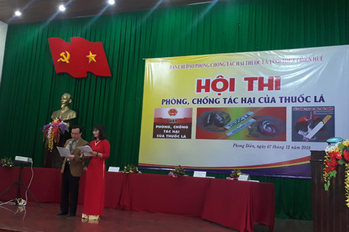 Ngày 07-12-2018, Hội thi Phòng chống tác hại của thuốc lá được tổ chức tại huyện Phong Điền, tham dự hội thi có Ths Bs Phan Đăng Tâm - Phó giám đốc Trung tâm Kiểm soát bệnh tật tỉnh TT Huế, BSCKII Nguyễn Đức Lợi - Giám đốc Trung tâm Y tế Phong Điền và các thành viên Ban giám khảo, Ban tổ chức, Ban thư ký Hội thi, cùng với sự tham gia của 10 đội dự thi thuộc các khoa phòng của Trung tâm Y tế huyện và 16 Trạm y tế trên địa bàn. Hội thi gồm 3 phần: thi kiến thức, hùng biện và thi tài năng ; với nội dung liên quan đến tác hại của thuốc lá đối với sức khỏe bản thân và mọi người xung quanh, thuốc lá và các bệnh liên quan, Luật phòng, chống tác hại của thuốc lá, quy định mức độ xử phạt, các hoạt động truyền thông phòng chống hút thuốc lá... Các đội dự thi đã thể hiện ấn tượng nội dung phần thi của đội mình thông qua các loại hình sân khấu hoá, tiểu phẩm, bài hát có phụ họa trang phục cách điệu với hình ảnh tuyên truyền phòng chống tác hại thuốc lá,…