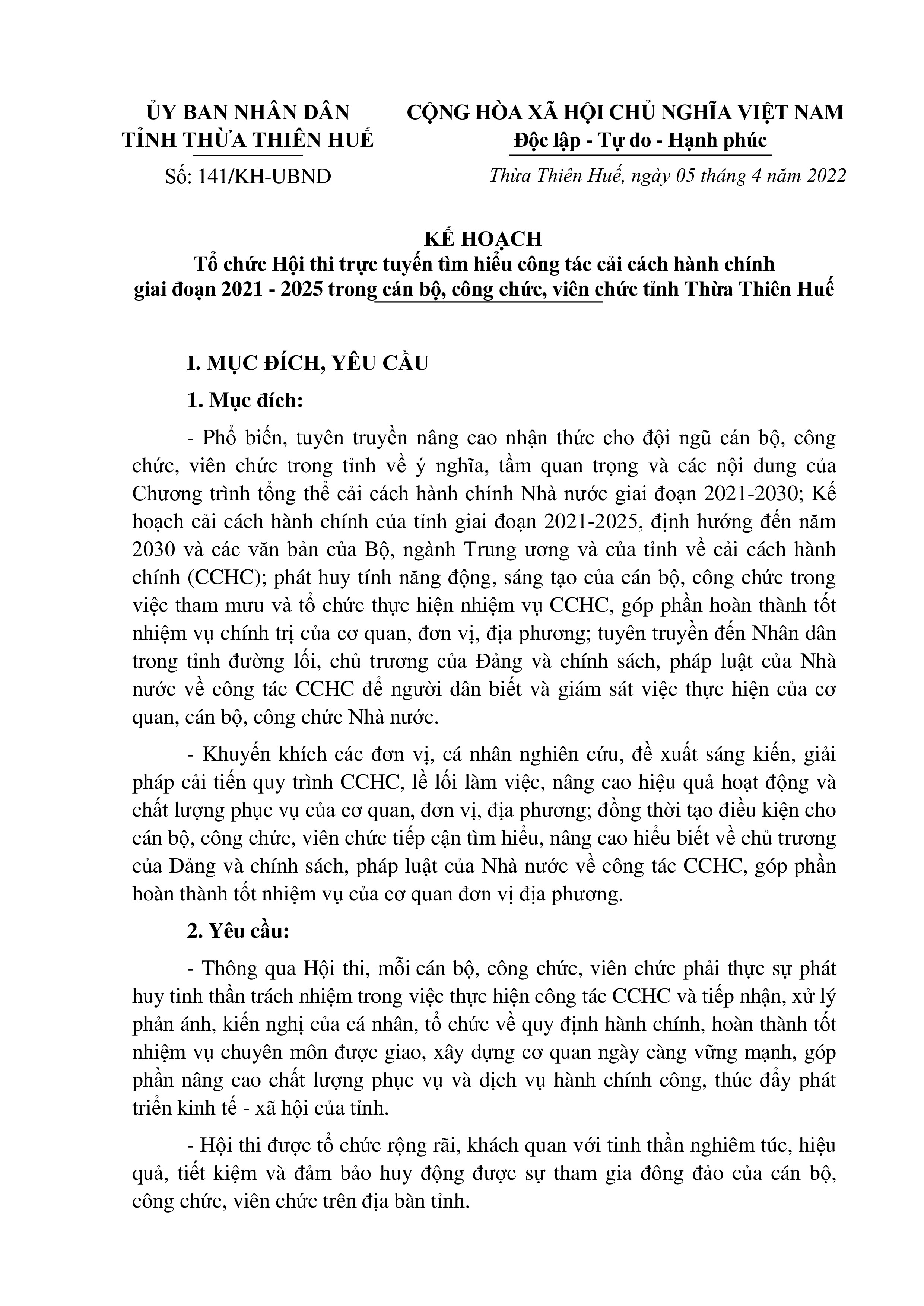 Hội thi trực tuyến tìm hiểu công tác cải cách hành chính giai đoạn 2021-2025 trong cán bộ, viên chức, công chức tỉnh Thừa Thiên Huế