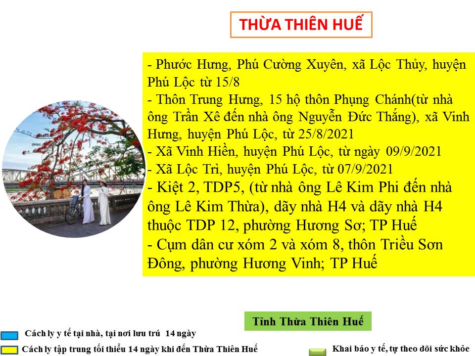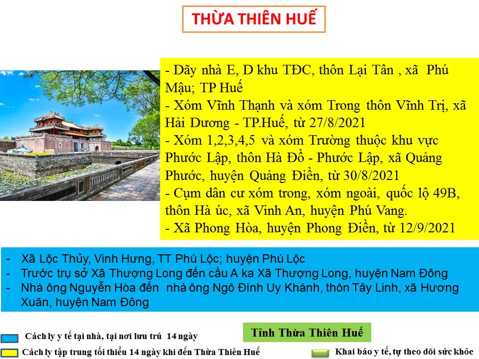 Hướng dẫn giám sát phòng, chống dịch COVID -19 khi đến tỉnh Thừa Thiên Huế ( ngày 12/9/2021)