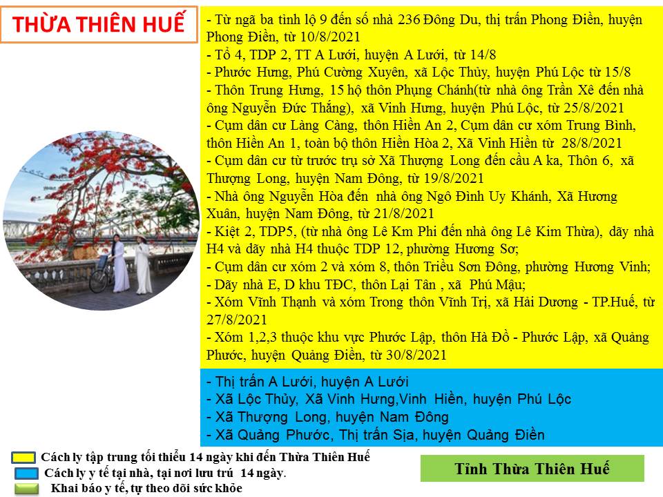 Hướng dẫn giám sát phòng, chống dịch COVID -19 khi đến tỉnh Thừa Thiên Huế ( ngày 31/8/2021)