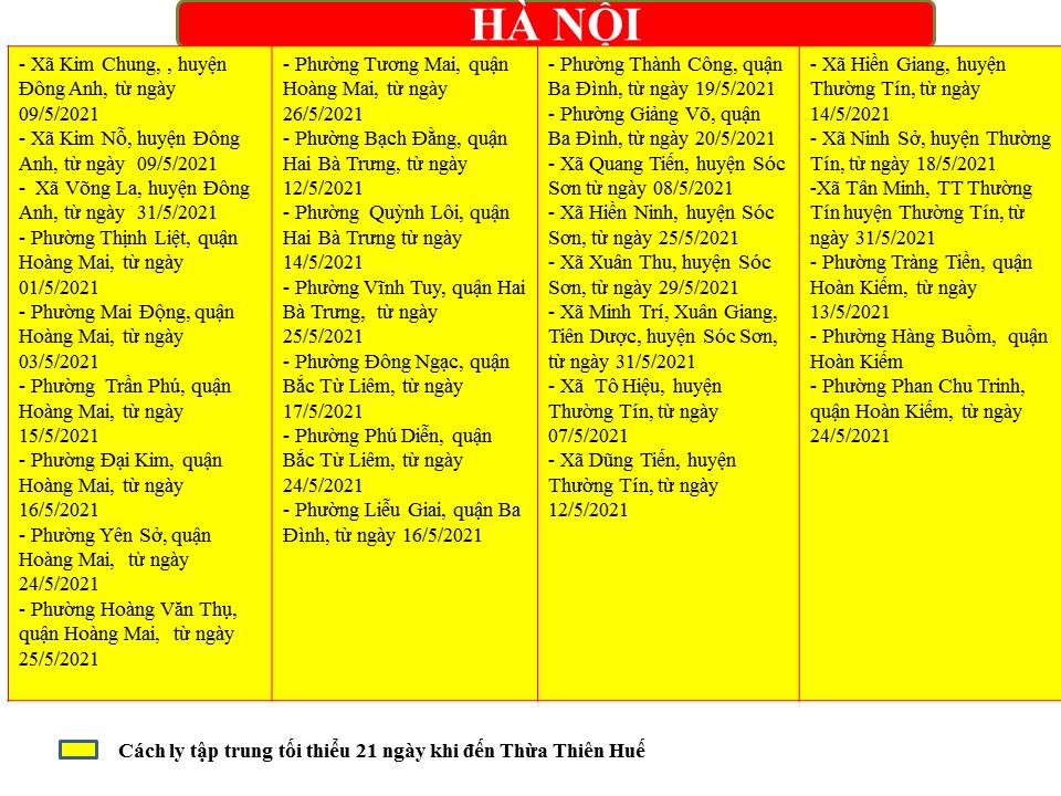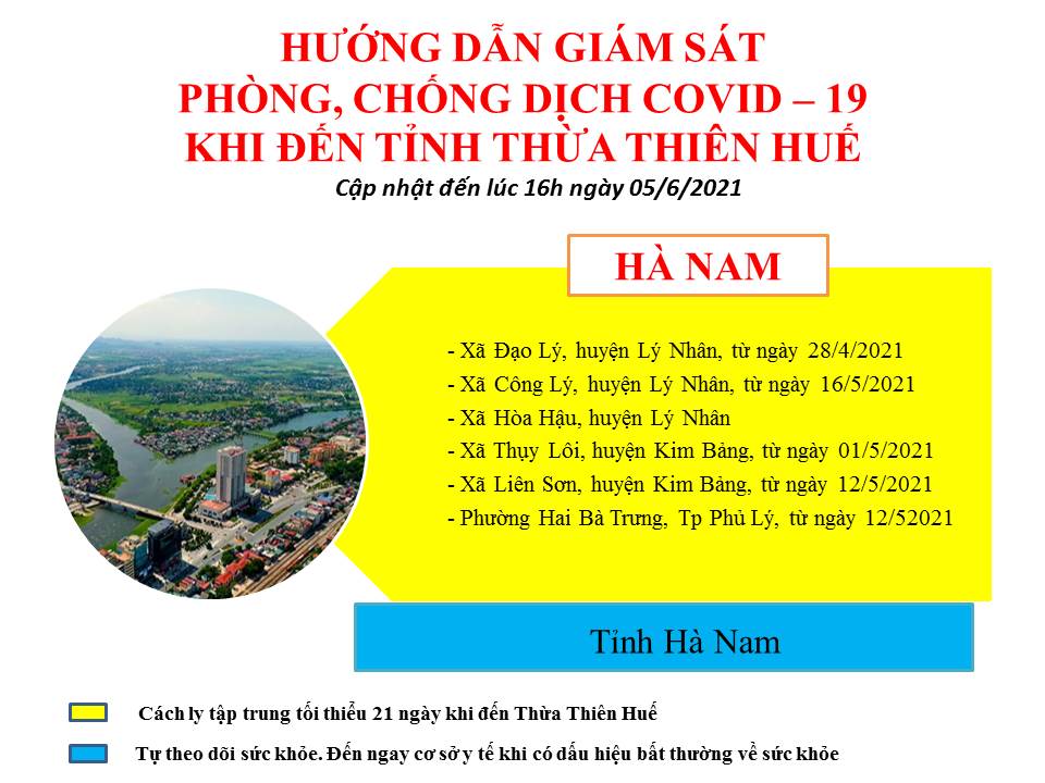 Hướng dẫn giám sát phòng, chống dịch COVID -19 khi đến tỉnh Thừa Thiên Huế ( ngày 05/6/2021)