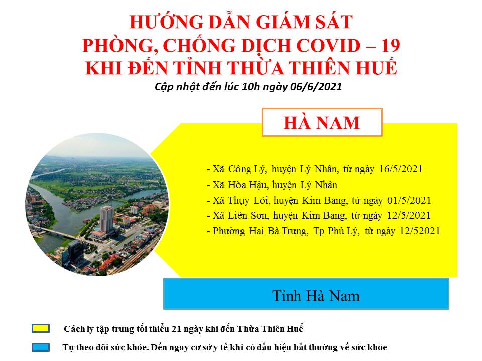 Hướng dẫn giám sát phòng, chống dịch COVID -19 khi đến tỉnh Thừa Thiên Huế ( ngày 05/6/2021).