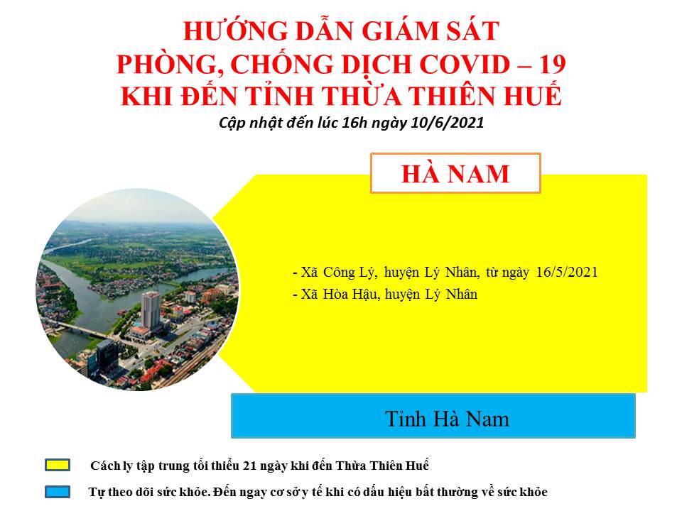Hướng dẫn giám sát phòng, chống dịch covid - 19 khi đến tỉnh Thừa Thiên Huế (ngày 10/6/2021).