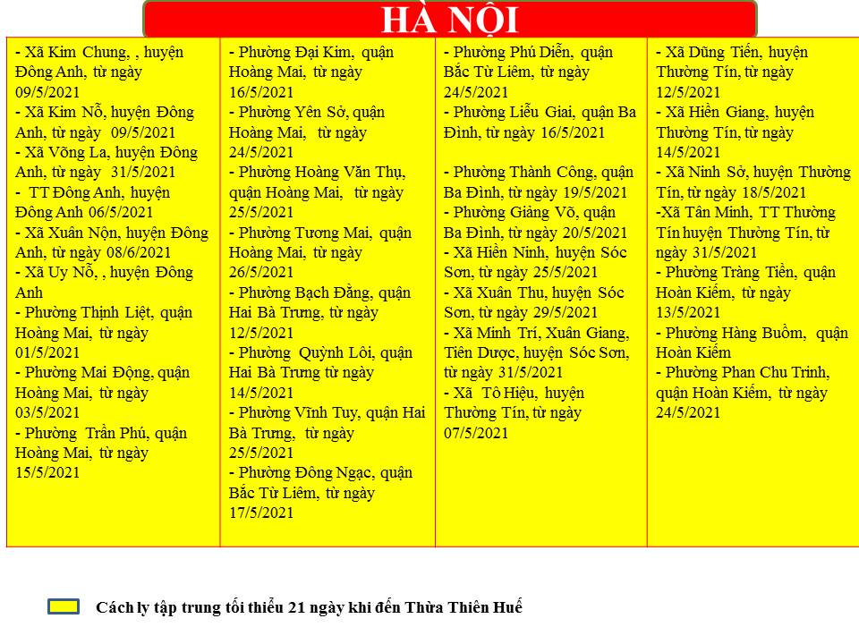 Hướng dẫn giám sát phòng, chống dịch COVID -19 khi đến tỉnh Thừa Thiên Huế ( ngày 08/6/2021)