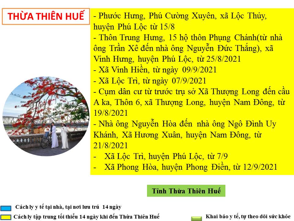 Hướng dẫn giám sát phòng, chống dịch COVID -19 khi đến tỉnh Thừa Thiên Huế ( ngày 12/9/2021)