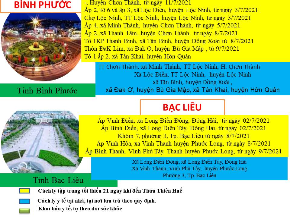 Thông báo khẩn ngày 13 tháng 7 năm 2021 của Ban chỉ đạo phòng chống dịch bệnh Covid-19 tỉnh Thừa Thiên Huế. Tìm người liên quan đến 02 ca bệnh COVID-19 Ban chỉ đạo phòng chống dịch bệnh COVID-19 tỉnh Thừa Thiên Huế đề nghị tất cả những người đến các địa điểm và thời gian sau: