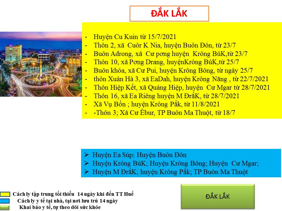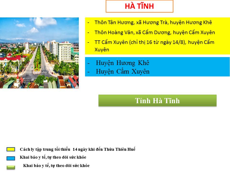 Hướng dẫn giám sát phòng, chống dịch COVID -19 khi đến tỉnh Thừa Thiên Huế ( ngày 13/8/2021)