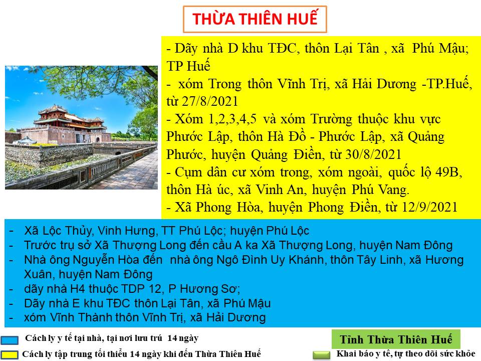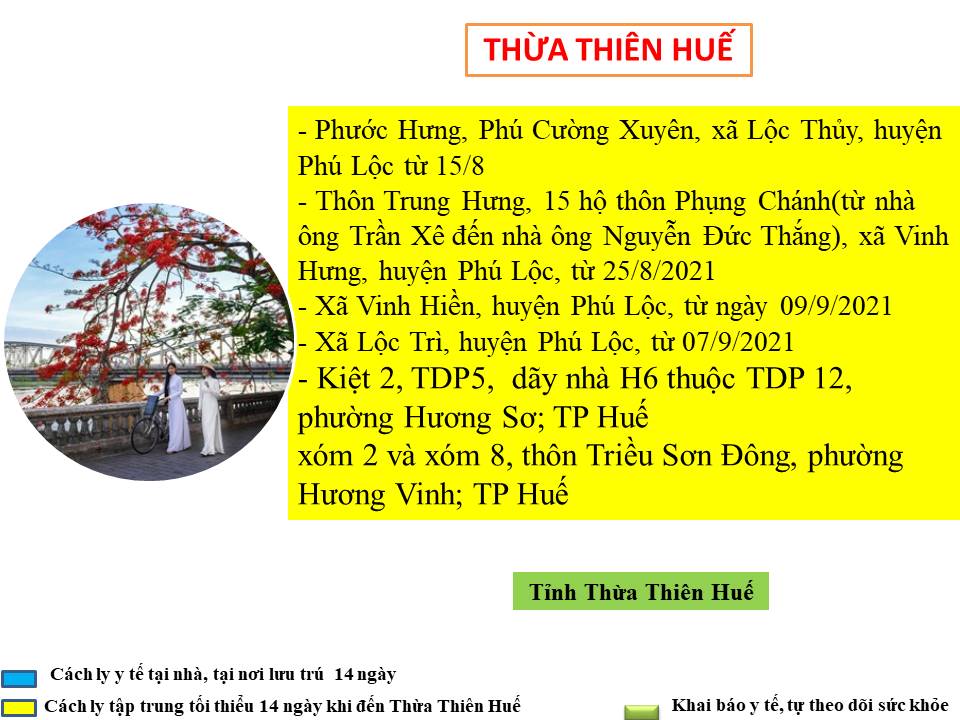 Hướng dẫn giám sát phòng, chống dịch COVID -19 khi đến tỉnh Thừa Thiên Huế ( ngày 15/9/2021)
