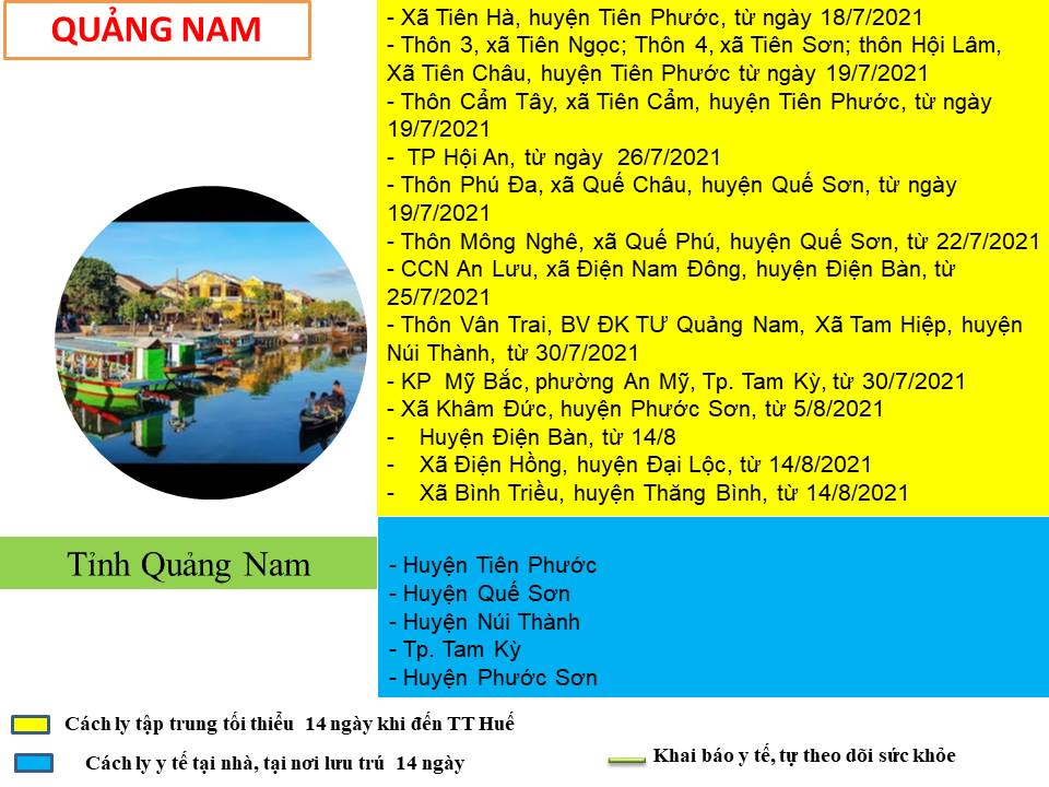 Hướng dẫn giám sát phòng, chống dịch COVID -19 khi đến tỉnh Thừa Thiên Huế ( ngày 19/8/2021).