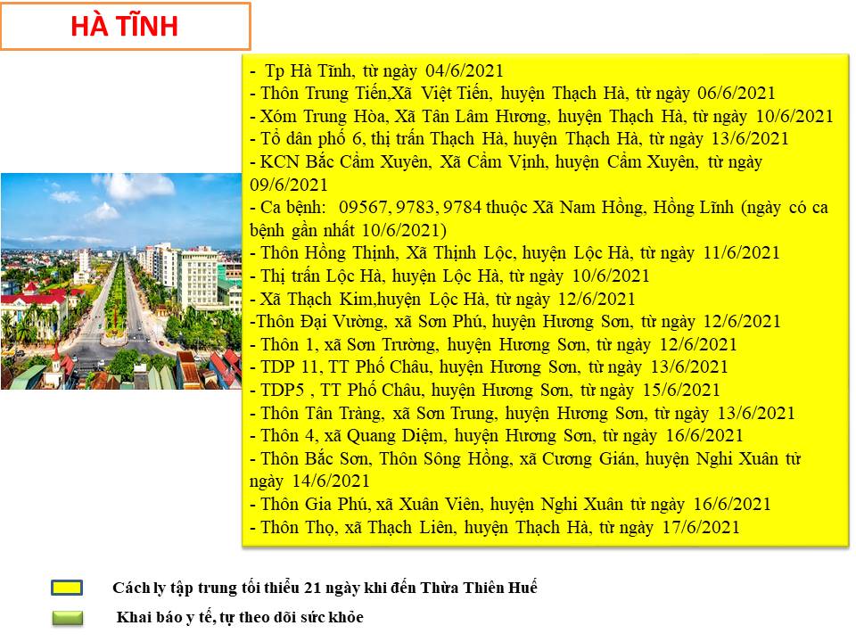 Hướng dẫn giám sát phòng, chống dịch COVID -19 khi đến tỉnh Thừa Thiên Huế ( ngày 20/6/2021)