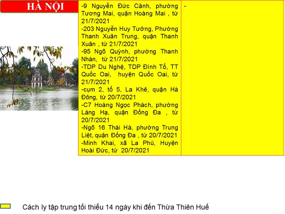 Thông báo khẩn ngày 18 tháng 7 năm 2021 của Ban chỉ đạo phòng chống dịch bệnh Covid-19 tỉnh Thừa Thiên Huế. Tìm người liên quan đến bệnh nhân COVID-19 Bệnh nhân mã số: 51.019 , năm sinh : 1964, giới tính : nam Quê quán: Thôn Sơn Tùng, xã Quảng Vinh, huyện Quảng Điền, tỉnh Thừa Thiên Huế Nơi ở và làm việc: 34 Phạm Hữu Lầu, Xã Phước Kiển, huyện Nhà Bè, thành phố Hồ Chí Minh Nghề Nghiệp: Lắp đặt nhôm kính tại thành phố Hồ Chí Minh