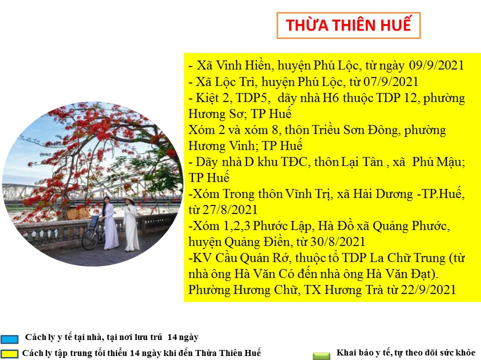 Hướng dẫn giám sát phòng, chống dịch Covid - 19 khi đến tỉnh Thừa Thiên Huế (ngày 23/9/2021)