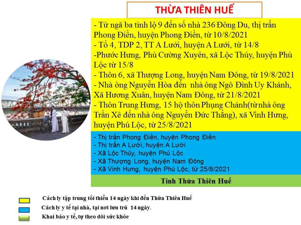 Hướng dẫn giám sát phòng, chống dịch COVID -19 khi đến tỉnh Thừa Thiên Huế ( ngày 25/8/2021)