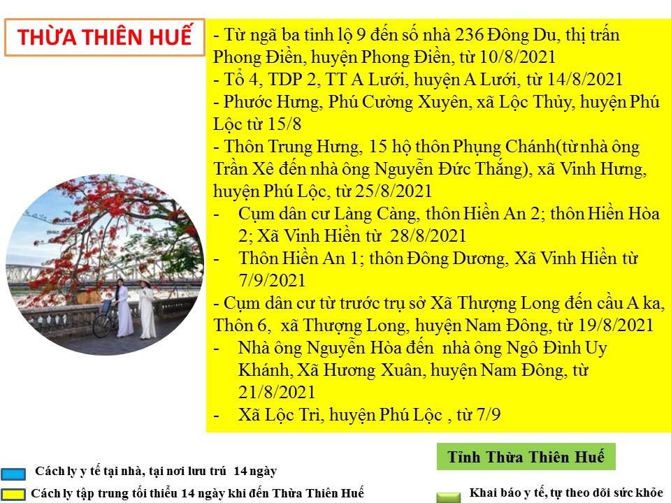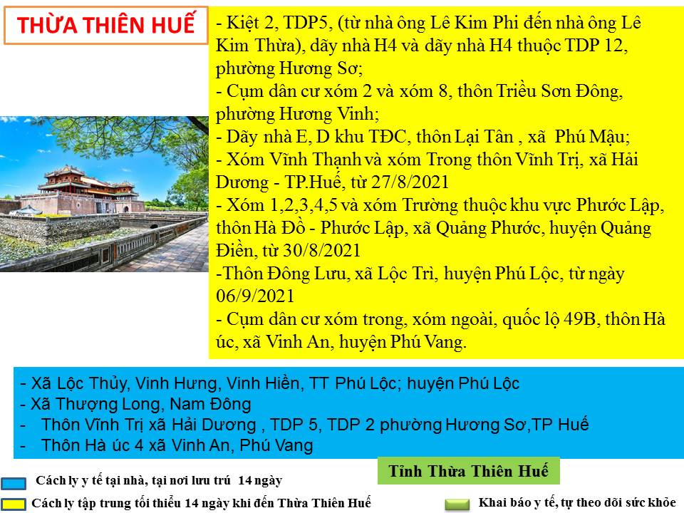 Hướng dẫn giám sát phòng, chống dịch COVID -19 khi đến tỉnh Thừa Thiên Huế ( ngày 06/9/2021)