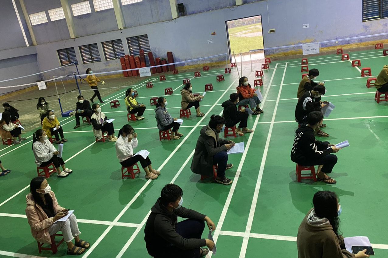 Hình ảnh điểm tiêm trường THCS Nguyễn Xuân Thưởng- thị xã Hương Trà: