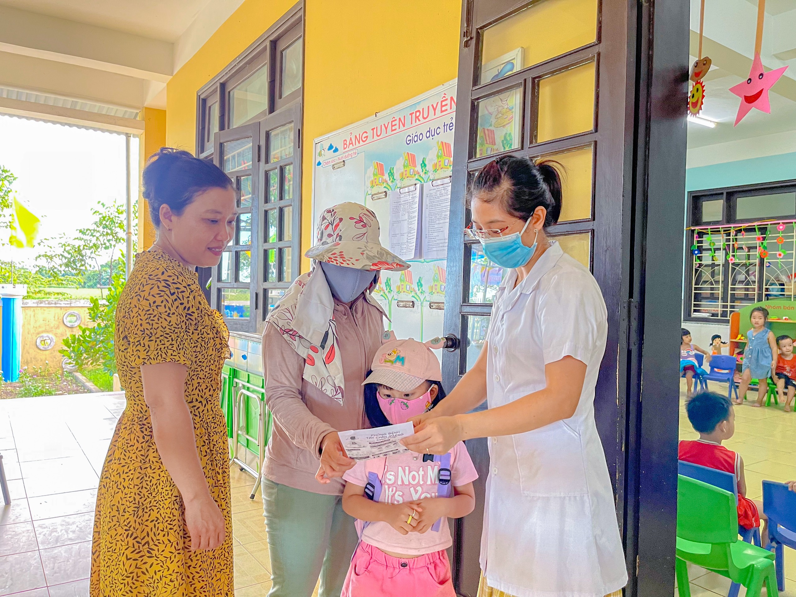 Phát tờ rơi tuyên truyền về bệnh đau mắt đỏ cho phụ huynh các trường mầm non