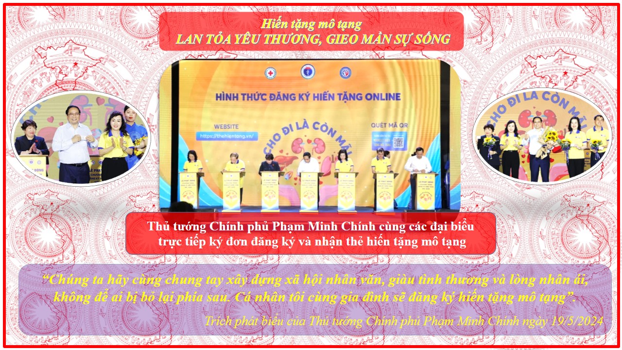 Chương trình “Đăng ký hiến tặng mô, tạng - Cho đi là còn mãi”, được diễn ra tại Bệnh viện Hữu nghị Việt Đức - Hà Nội, Thủ tướng Chính phủ Phạm Minh Chính dự và phát động phong trào. Tham dự lễ có gần 300 đại biểu là lãnh đạo các Bộ/Ban/Ngành, UBMTTQVN, Giám đốc Sở Y tế các tỉnh/thành, lãnh đạo các BV Hiến/Ghép tạng, Trường Đại học Y Dược, Hội Chữ Thập đỏ, các Tổ chức thế giới, Tổ chức Tôn giáo, Hội/Đoàn thể và các doanh nghiệp. Sau buổi phát động Thủ tướng Chính phủ Phạm Minh Chính cùng các đại biểu đã đăng ký hiến tặng mô/tạng.