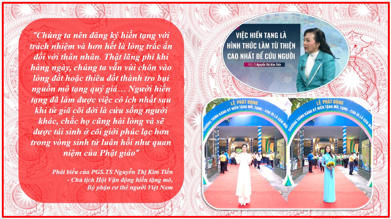 Chúng ta rất xúc động được biết, hiện nay Việt Nam đã có hàng nghìn người hiến mô, tạng và khoảng hơn 86.000 người đăng ký hiến mô, tạng sau khi qua đời. Đây là minh chứng sống động cho sự nhận thức, tình thương và lòng nhân ái ngày càng được lan tỏa mạnh mẽ, sâu rộng trong xã hội về hiến tạng cứu người - một nghĩa cử cao đẹp.