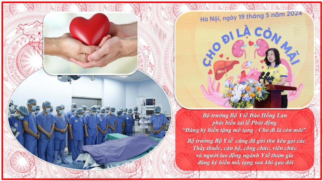 Chương trình “Đăng ký hiến tặng mô, tạng - Cho đi là còn mãi” do Bộ Y tế, Hội Chữ Thập đỏ Việt Nam, Hội Vận động hiến mô, bộ phận cơ thể người Việt Nam phối hợp tổ chức nhằm chuyển tải sâu rộng hơn ý nghĩa nhân đạo, nhân văn cao cả của việc hiến tặng mô/tạng cứu người như một nghĩa cử cao đẹp, một biểu tượng sáng chói của lòng nhân ái trong cộng đồng.