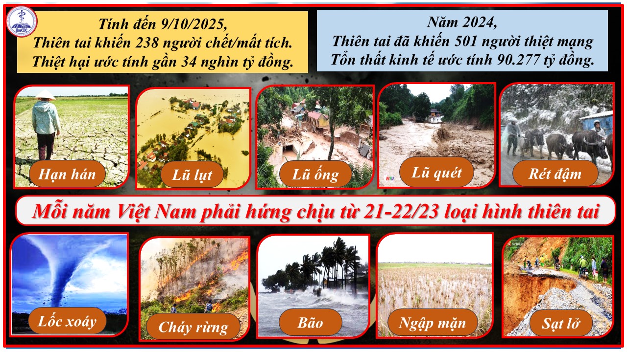 Việt Nam là một trong những quốc gia dễ bị tổn thương bởi các hiểm họa tự nhiên ở khu vực Châu Á và Châu Đại dương do tình hình khí tượng cực đoan. Năm 2025, cả nước đã xảy ra 20/22 loại hình thiên tai với diễn biến dồn dập, khốc liệt, nhiều yếu tố bất thường. Lũ quét thường xảy ra tại các tỉnh miền núi phía Bắc ở thượng nguồn các sông suối, vùng núi có địa hình phức tạp. Bão, lũ chủ yếu vẫn tập trung ở vùng Trung Bộ. Xâm nhập mặn ở khu vực Đồng bằng Sông Cửu Long. Thiên tai do thời tiết thường xảy ra trên phạm vi rộng, thiệt hại nặng nề về người, của cải, môi trường, gây ách tắc giao thông, hư hỏng các di tích văn hoá lịch sử…