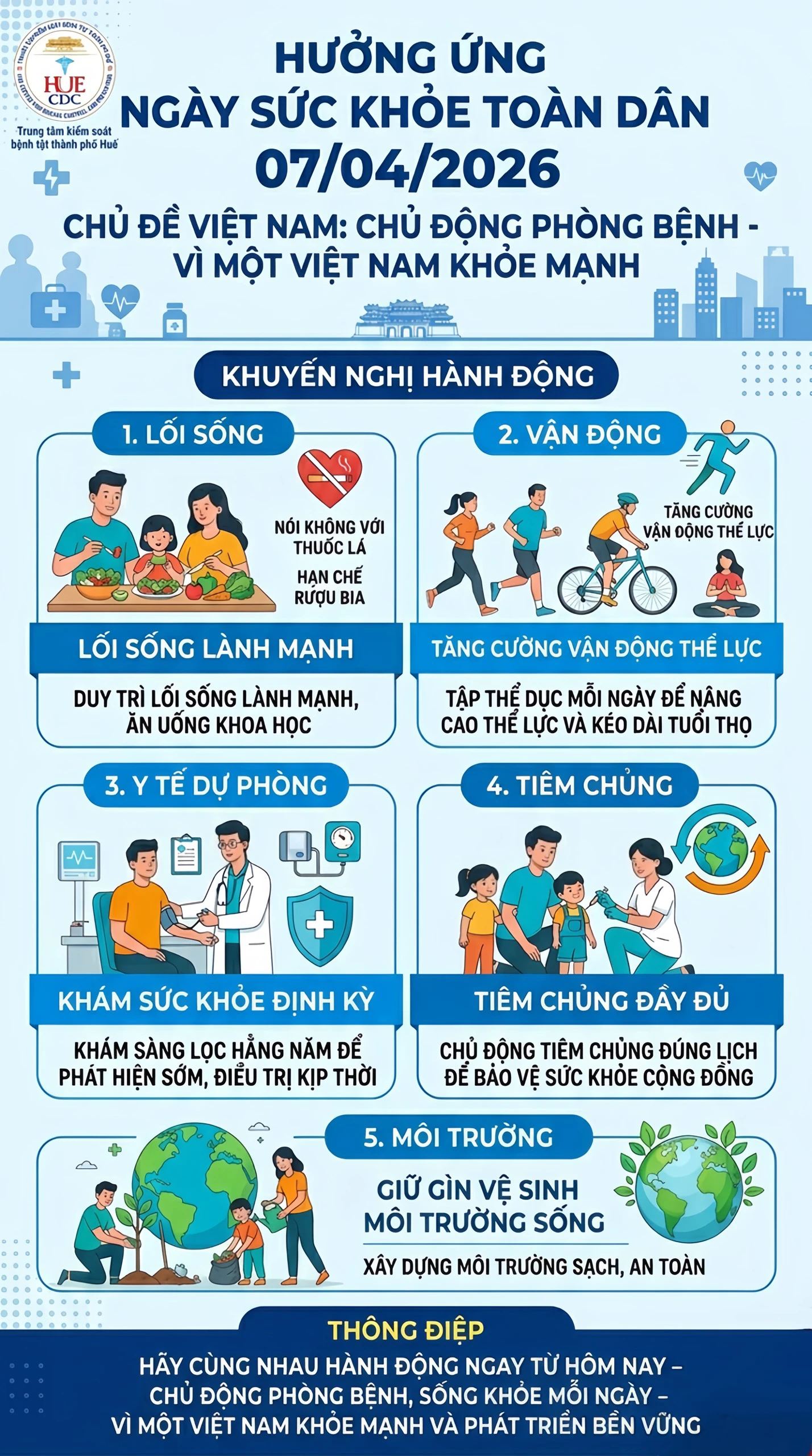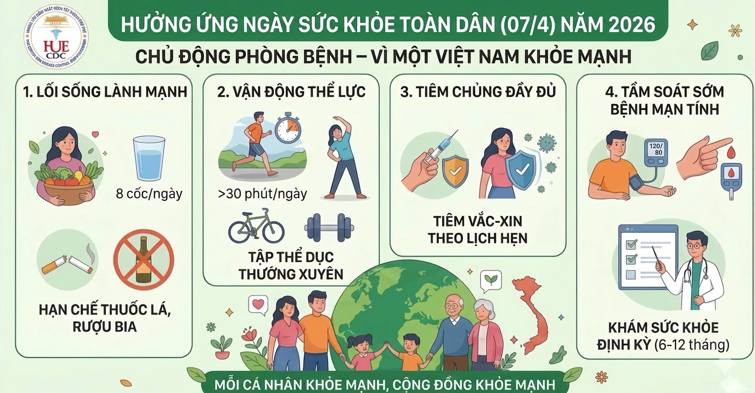Hưởng ứng Ngày Sức khỏe toàn dân (07/4) năm 2026: “Chủ động phòng bệnh - Vì một Việt Nam khỏe mạnh”.