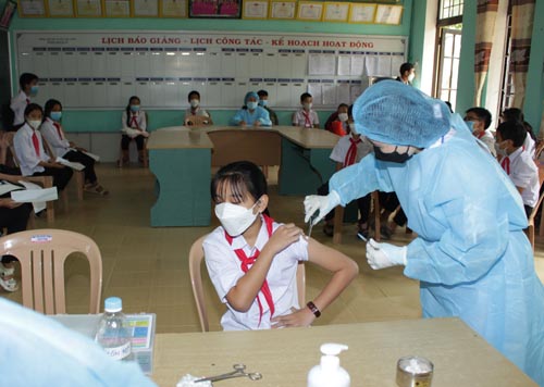 Theo thống kê trên địa bàn huyện A Lưới có 7.263 trẻ từ 5 đến dưới 12 tuổi thuộc độ tuổi được tiêm phòng, trong đó có 97,3% trẻ được gia đình đồng thuận cho trẻ tiêm vaccine để phòng bệnh Covid-19. Sáng nay (20/4) tại 10 điểm trường Tiểu học và Trung học Cơ sở của huyện A Lưới đã đồng loạt ra quân tiêm phòng cho các em trong độ tuổi qui định. Thực hiện theo hướng dẫn của Bộ Y tế và theo kế hoạch, đợt này toàn huyện A Lưới tiêm cho 556 em học sinh khối lớp 6 và 44 em học sinh khối lớp 5, số trẻ còn lại sẽ tiếp tục tiêm khi có vaccine và giảm dần độ tuổi.
