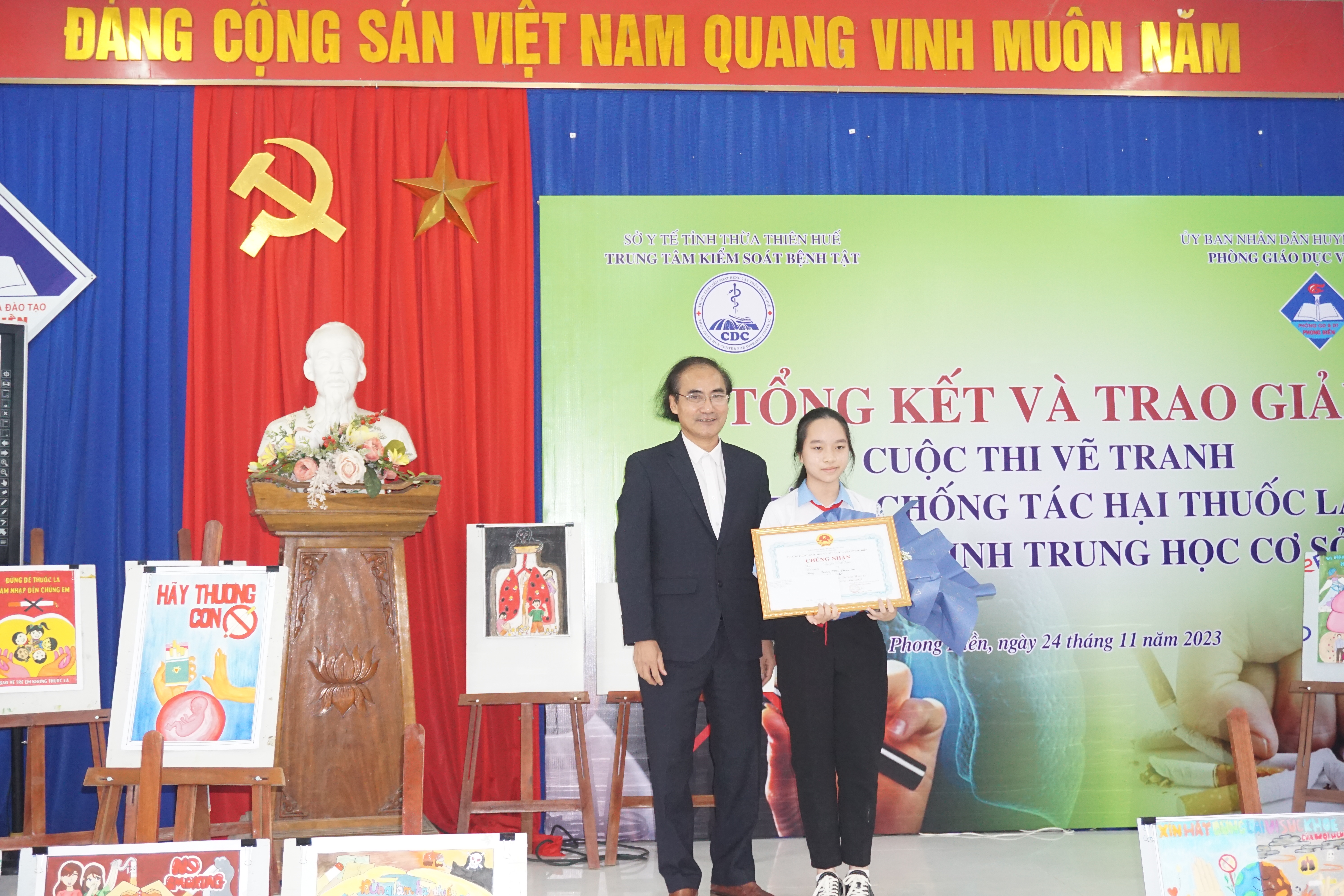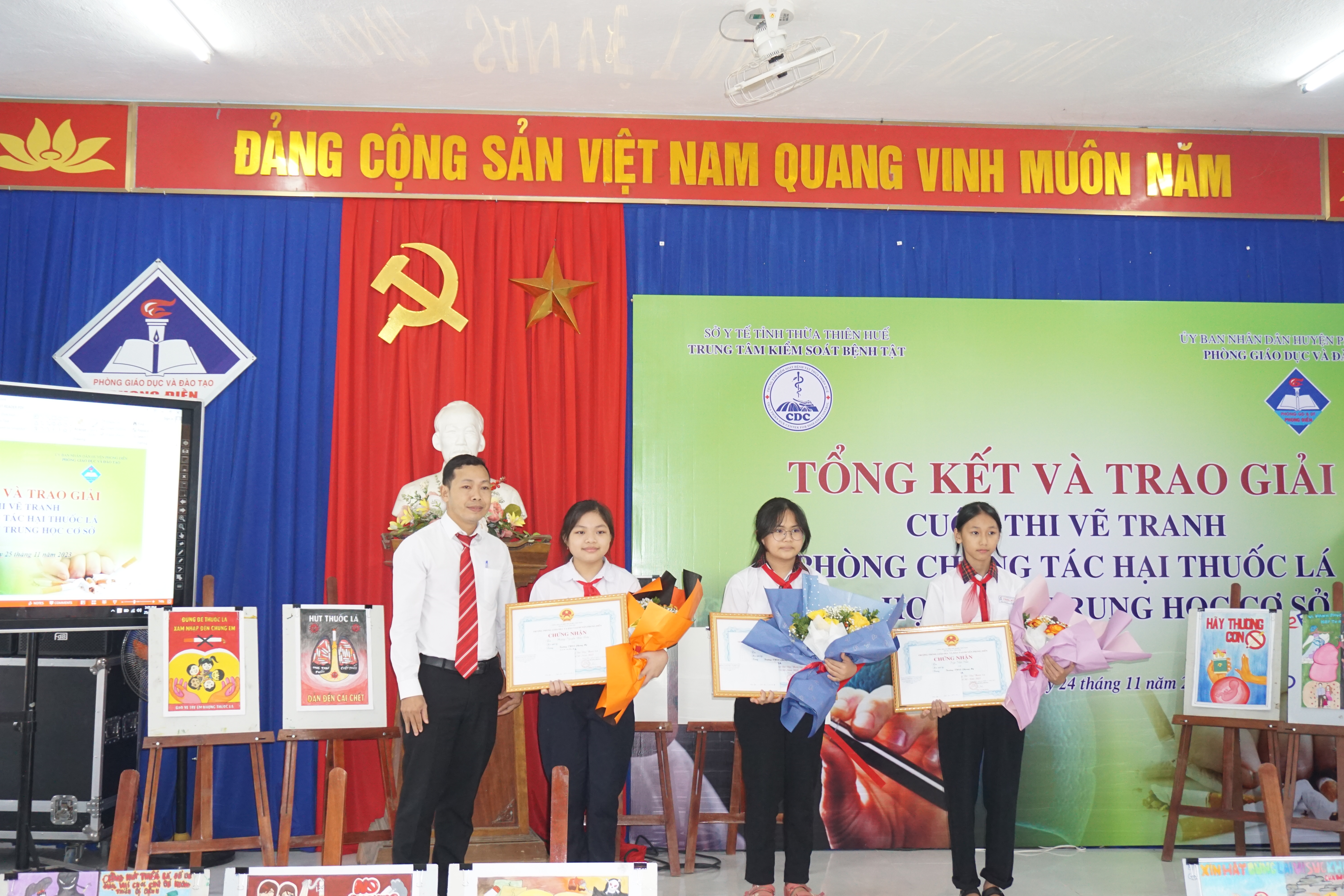 Ngày 25/11, huyện Phong Điền và Quảng Điền đã tổ chức tổng kết trao giải Cuộc thi vẽ tranh Phòng chống tác hại thuốc lá cho học sinh THCS trên địa bàn. Tham dự có lãnh đạo Trung tâm KSBT tỉnh, Khoa TTGDSK. Về phía huyện có lãnh đạo Phòng GDĐT, Trung tâm Y tế, đại diện BGH và học sinh các trường THCS và các đơn vị liên quan trên địa bàn huyện Phong Điền, Quảng Điền.