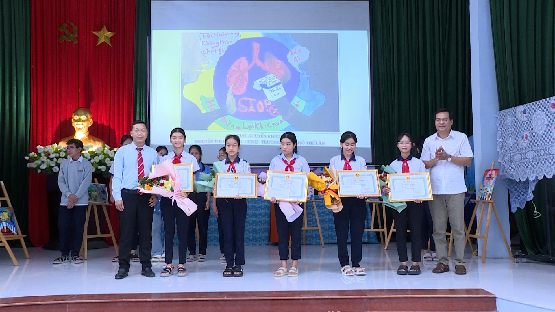 Phát biểu tại Lễ tổng kết và trao giải, lãnh đạo Trung tâm KSBT tỉnh mong muốn các Phòng GDĐT tiếp tục phối hợp đẩy mạnh công tác truyền thông giáo dục nâng cao nhận thức phòng chống tác hại của thuốc lá, xây dựng trường học không khói thuốc trong thời gian tới.
