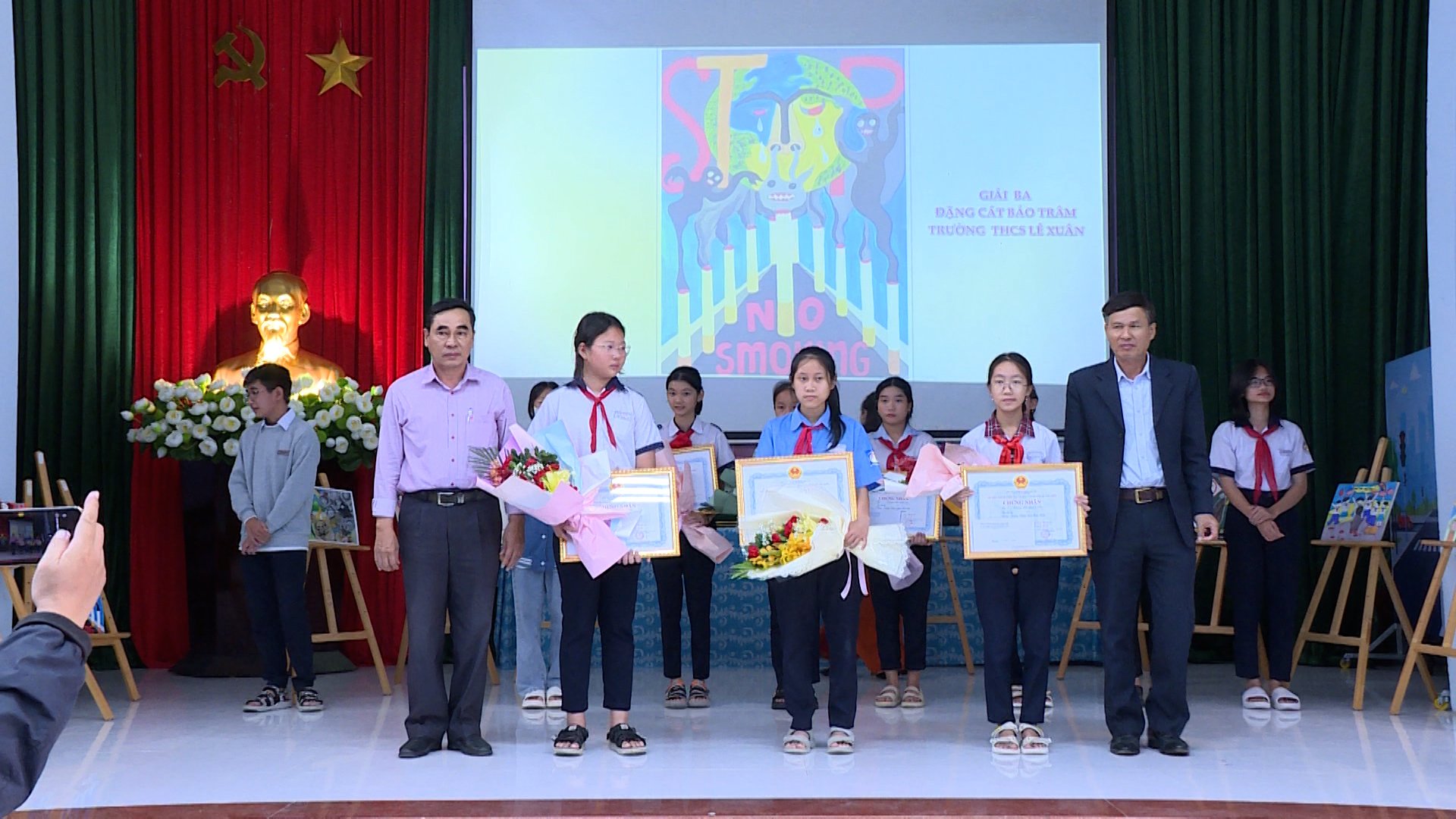 Ban tổ chức tặng hoa và trao Giấy chứng nhận cho các thí sinh đạt Giái Nhì