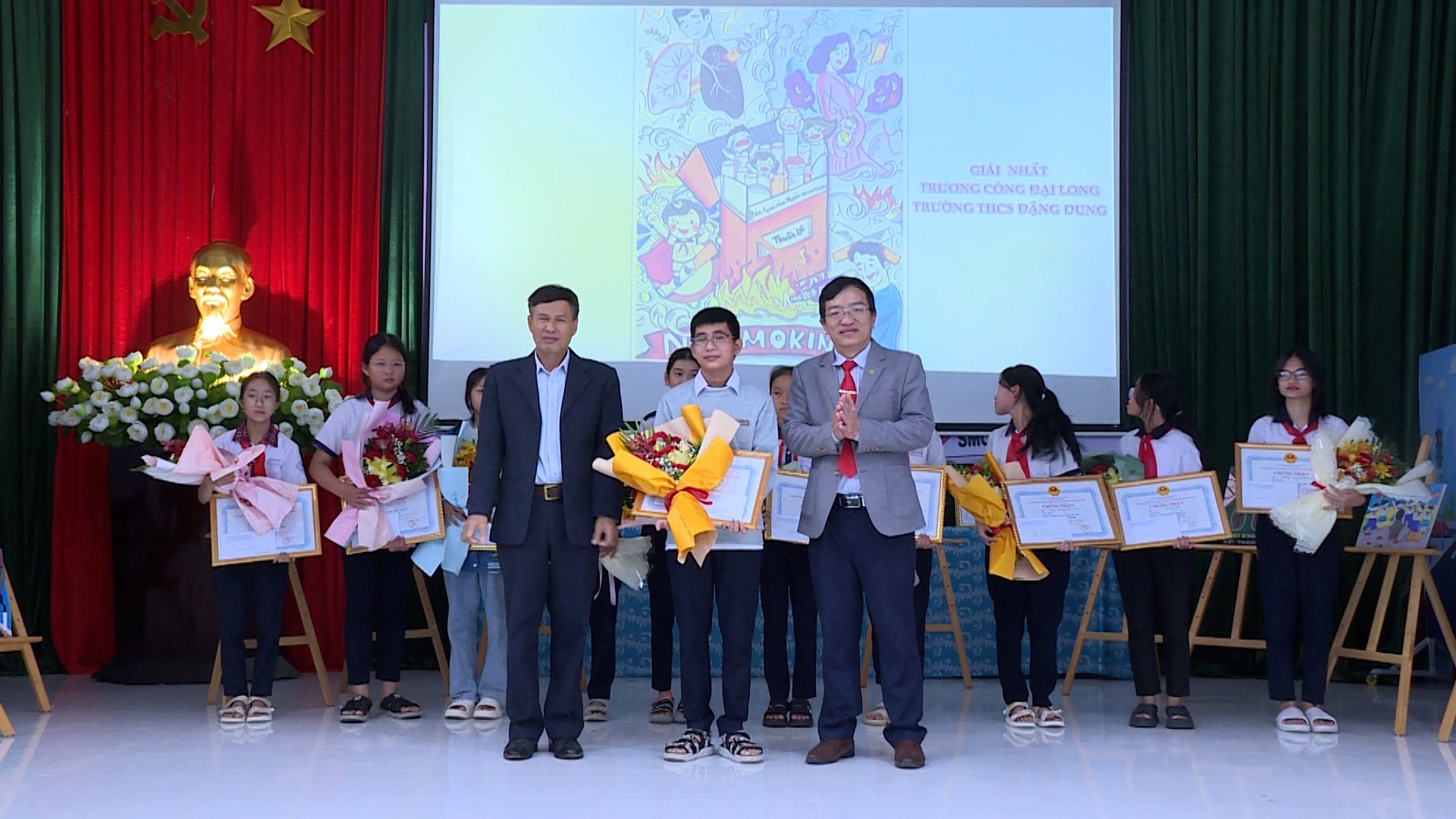 Ban tổ chức tặng hoa và trao Giấy chứng nhận cho thí sinh đạt Giái Nhất
