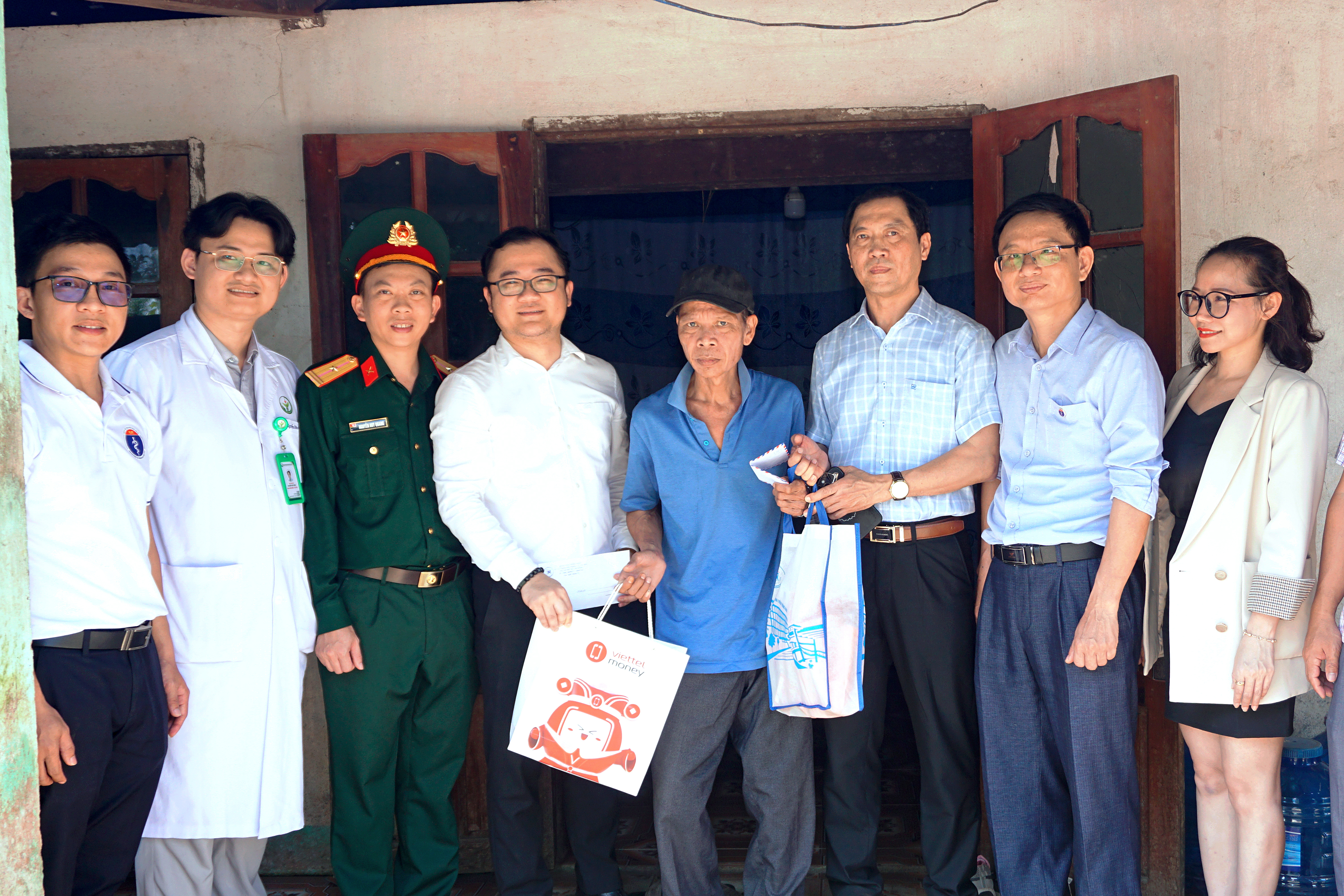 Ngoài việc tổ chức khám, Đoàn cũng đã trao tặng các phần quà cho các em học sinh và các gia đình có hoàn cảnh khó khăn tại thị trấn Khe tre. Đi thăm và tặng quà cho các gia đình có công cách mạng.