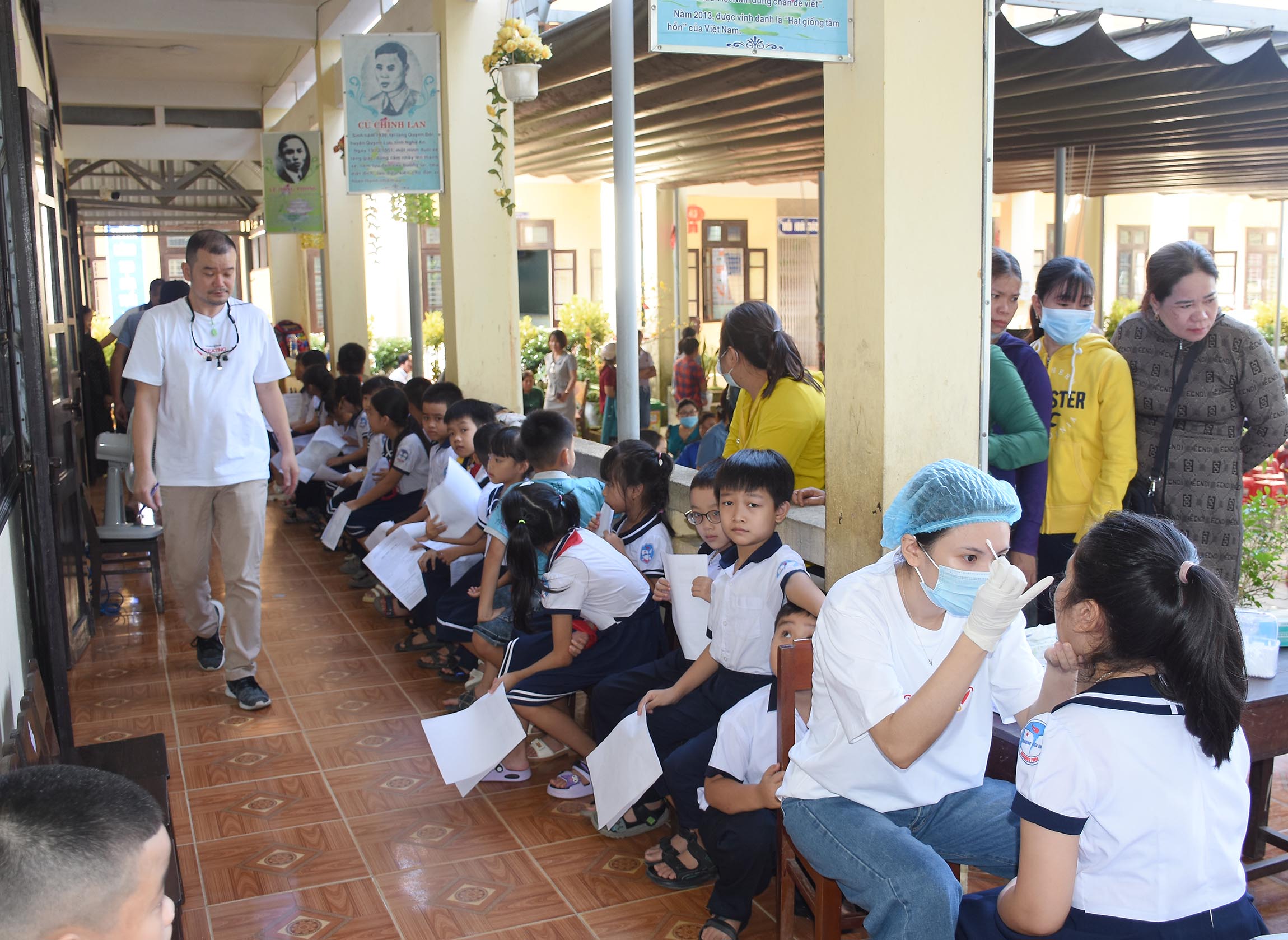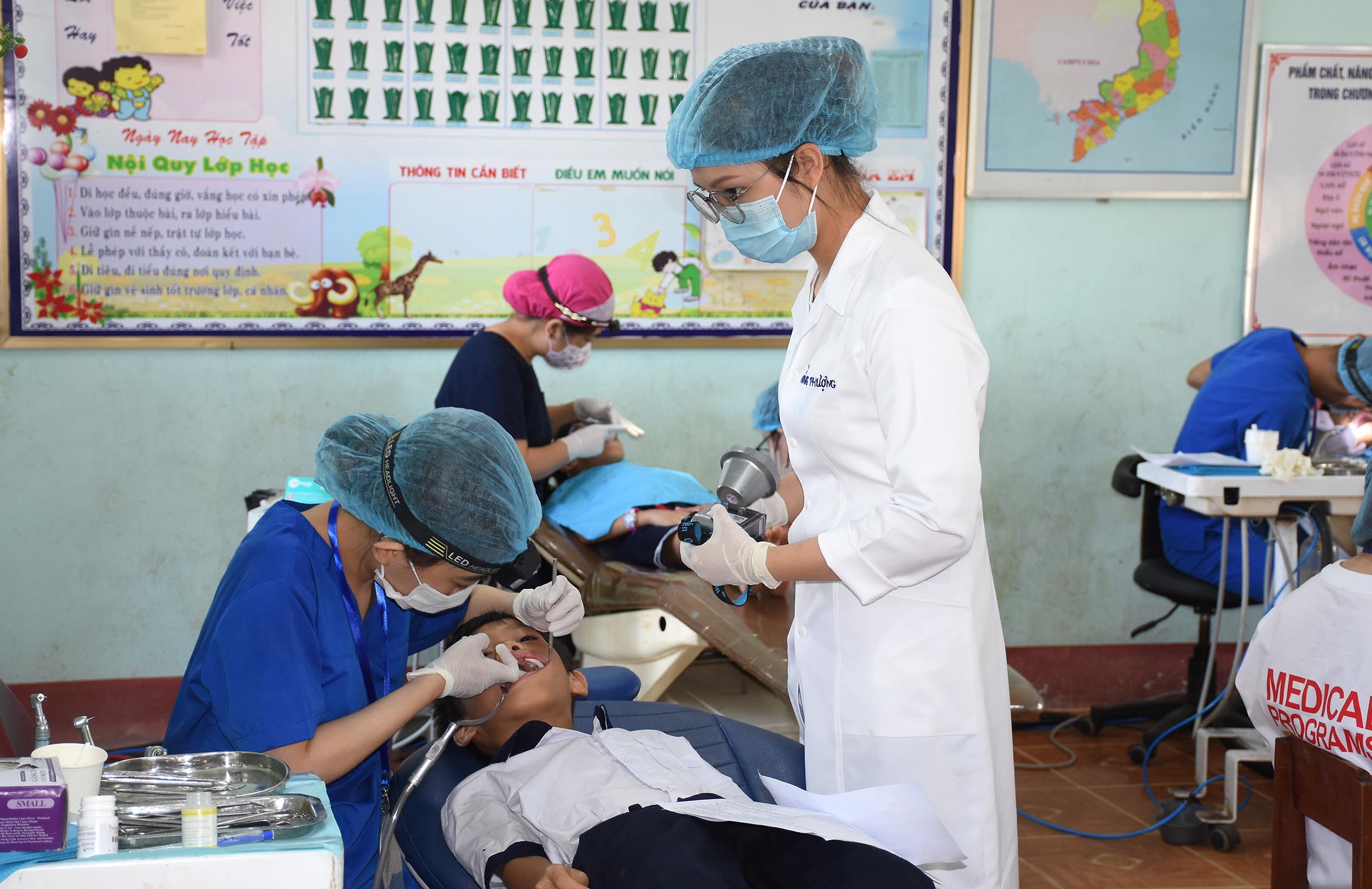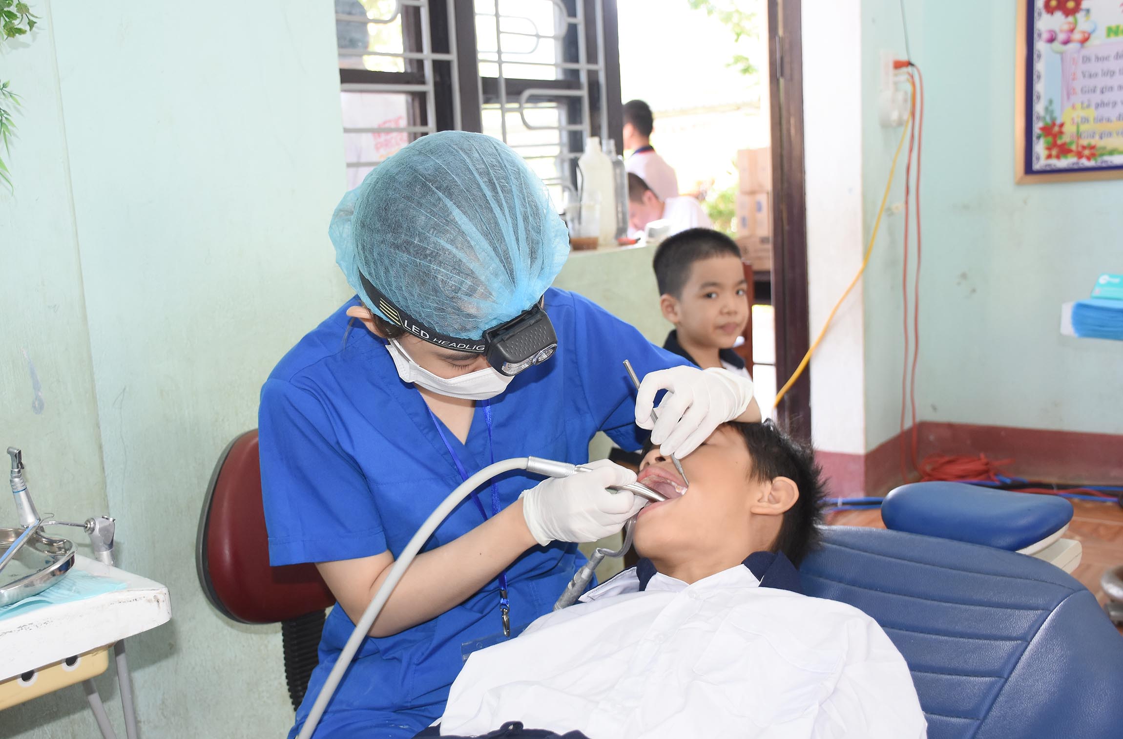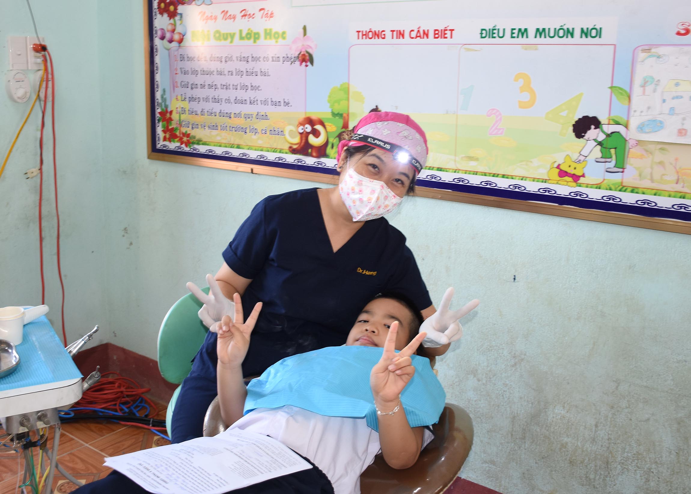 Điều trị và tặng bàn chải và kem đánh răng cho các trẻ sâu răng và các bệnh về răng miệng.