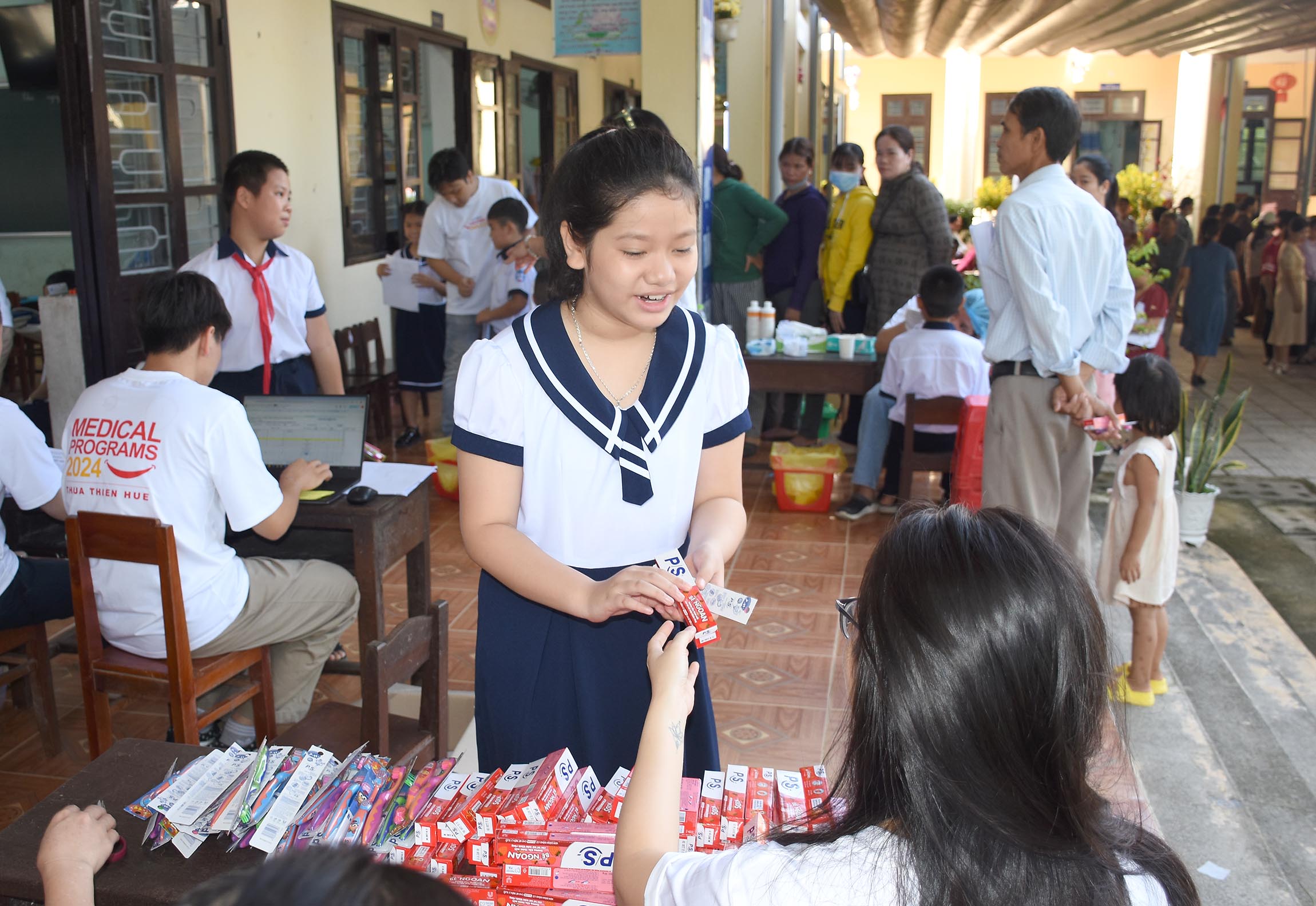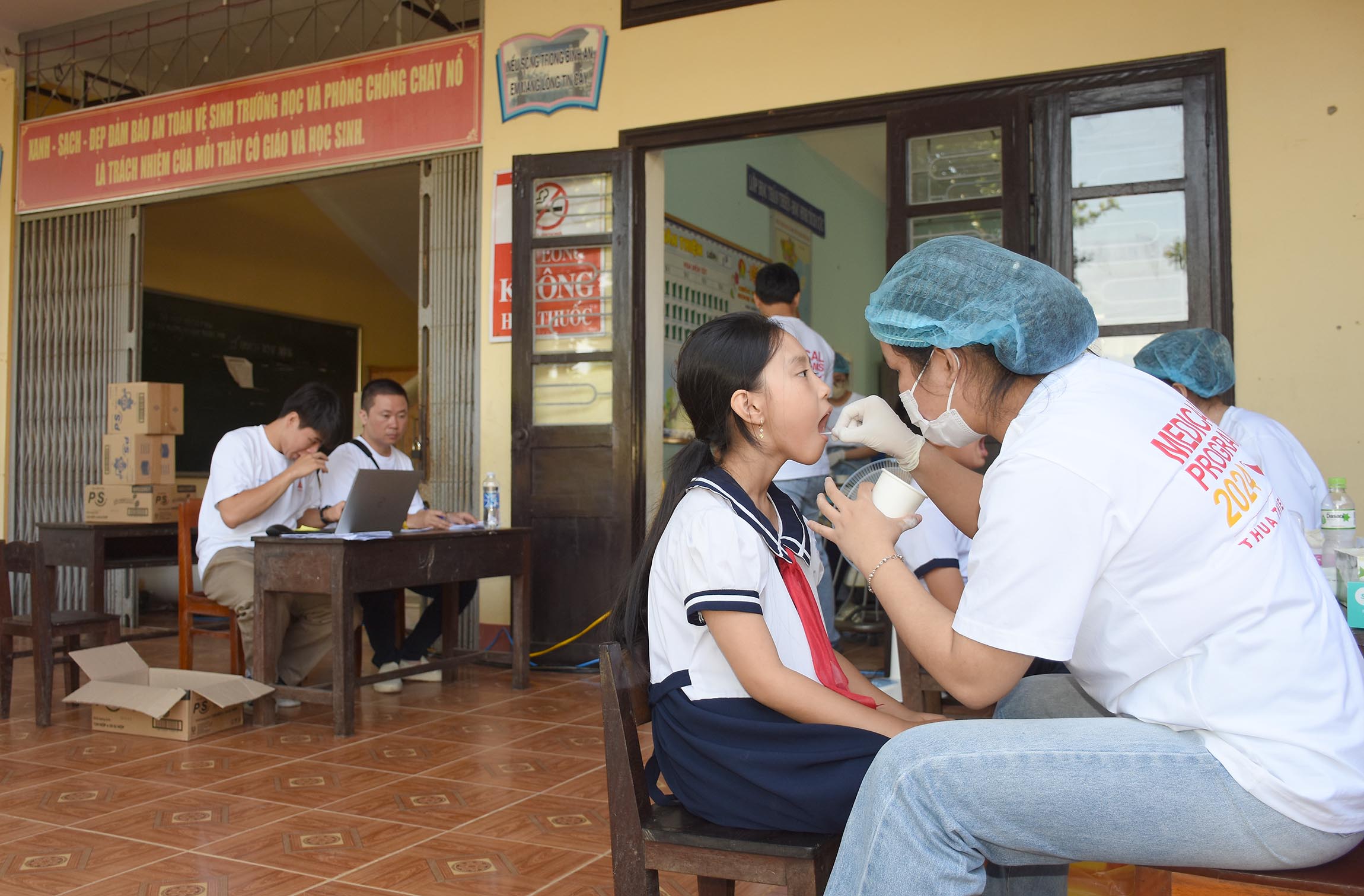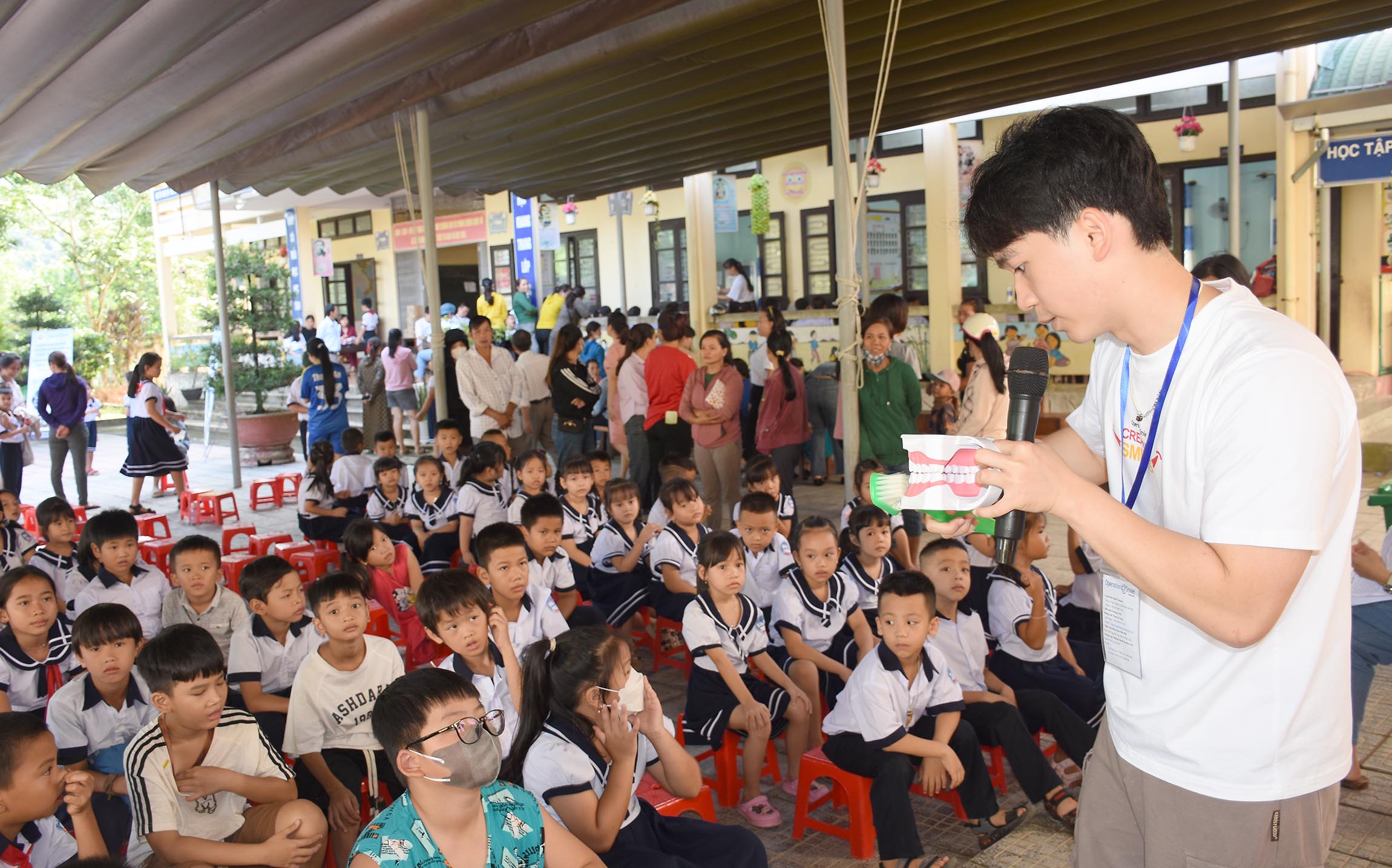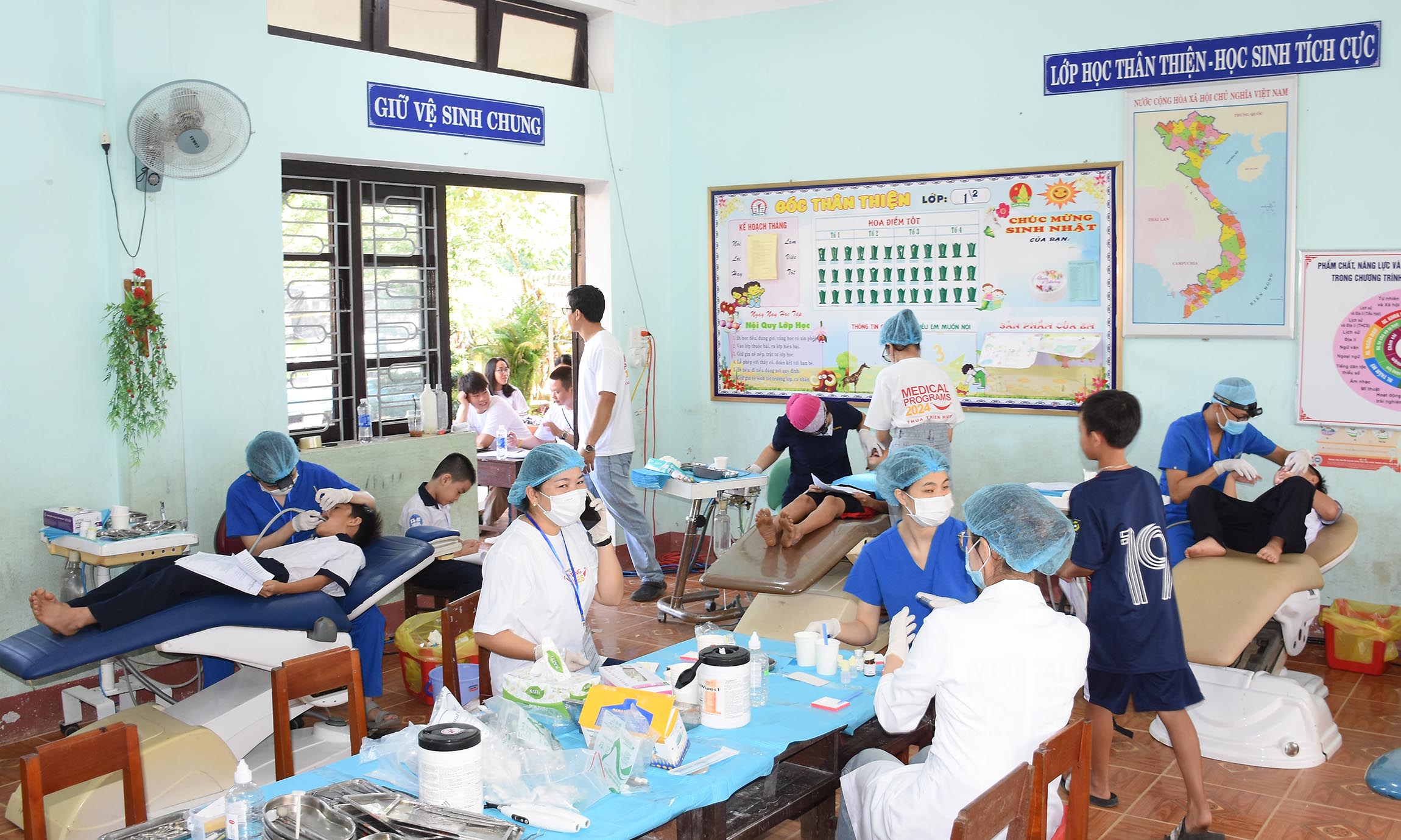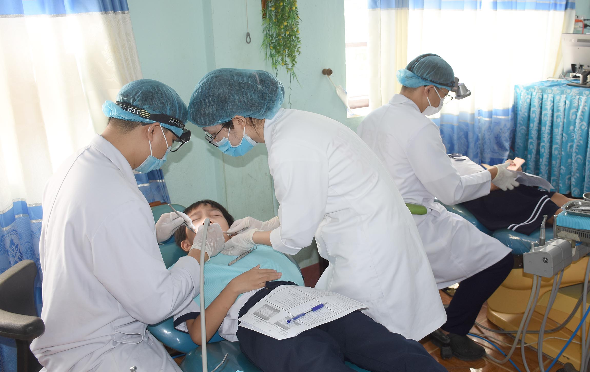 Điều trị và tặng bàn chải và kem đánh răng cho các trẻ sâu răng và các bệnh về răng miệng.