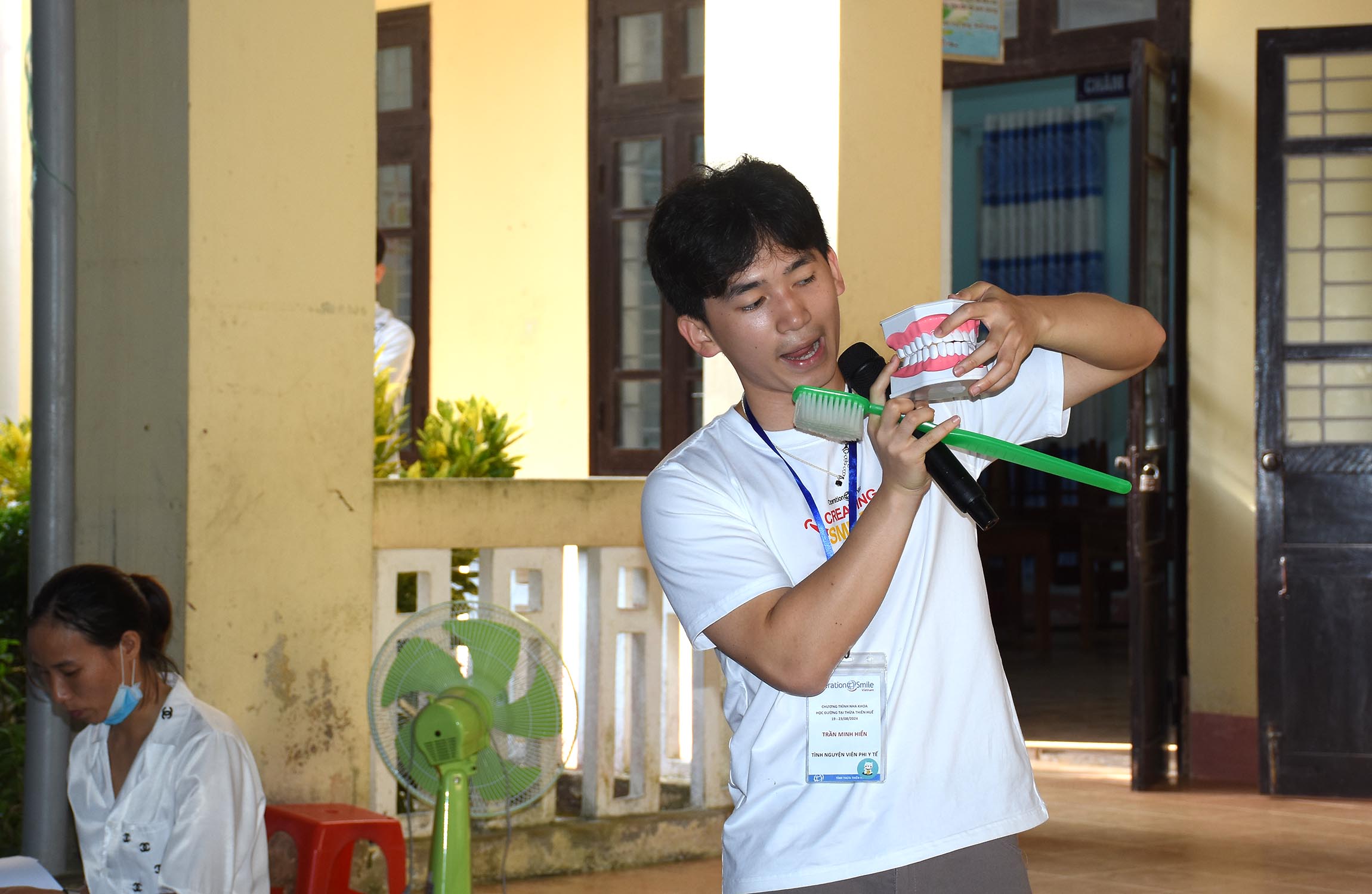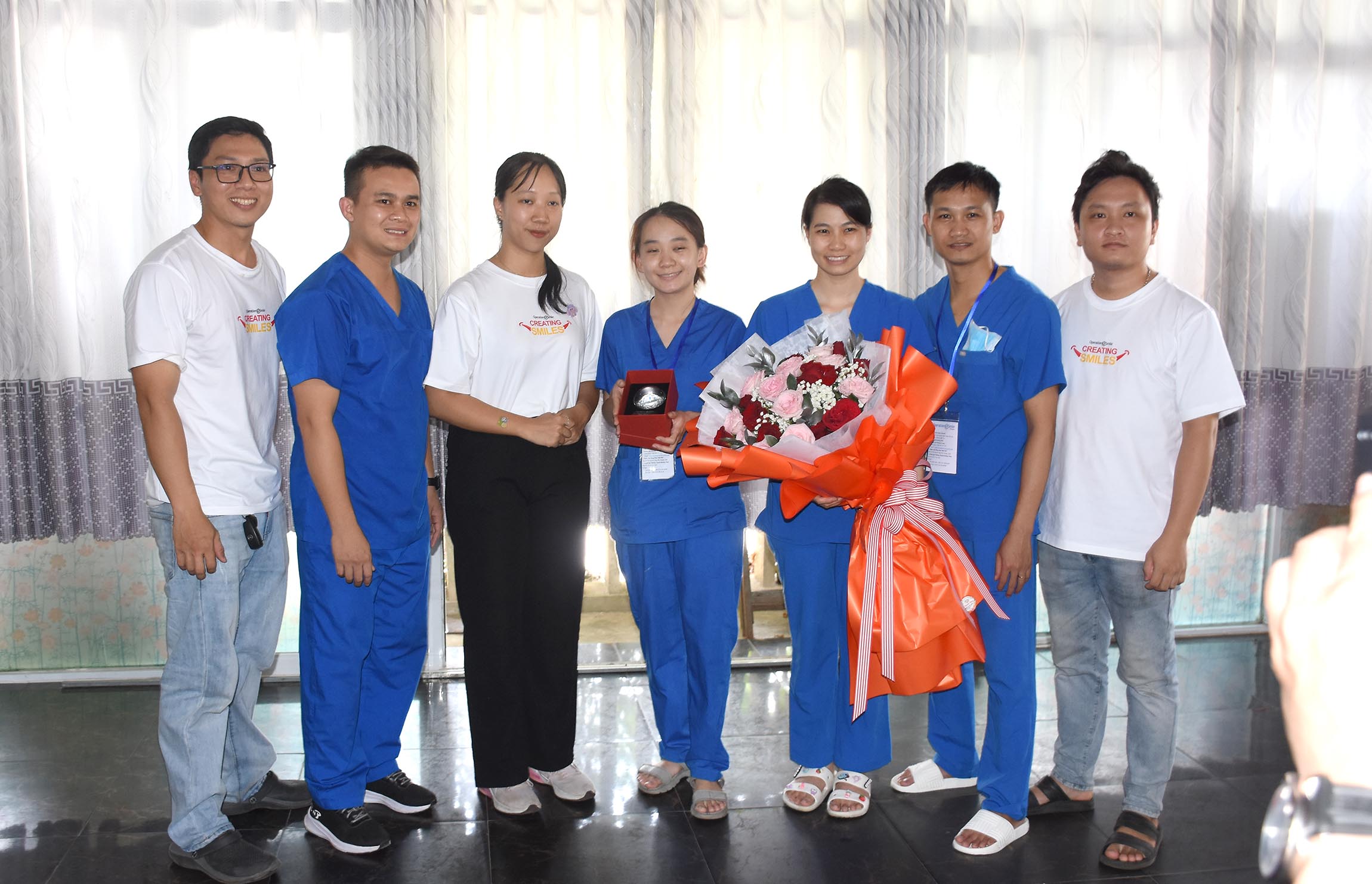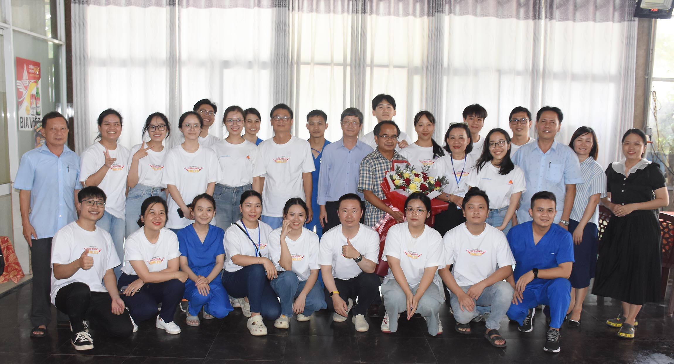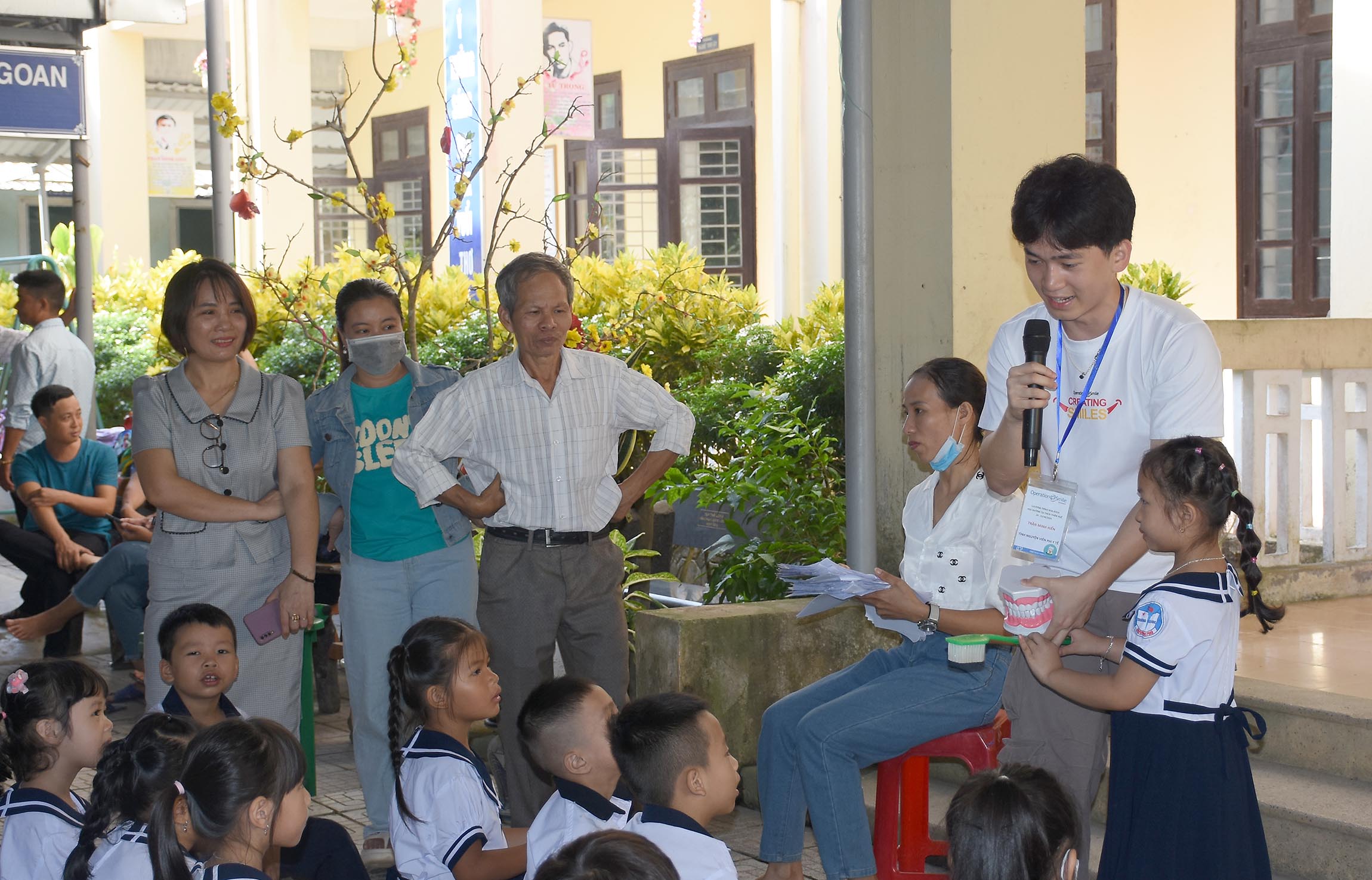 Tham gia Đoàn khám, điều trị các bệnh Răng miệng miễn phí cho học sinh Tiểu học huyện Nam Đông có 8 Bác sỹ nha khoa, 23 điều dưỡng/kỹ thuật viên/tình nguyện viên của BV Răng Hàm Mặt - Huế và các đối tác của Tổ chức Operation Smile Việt Nam đến từ BV Trường Đại học Y Dược Hà Nội, Trung tâm Nha khoa thẫm mỹ - Nụ cười Việt, TTYT huyện Nam Đông.