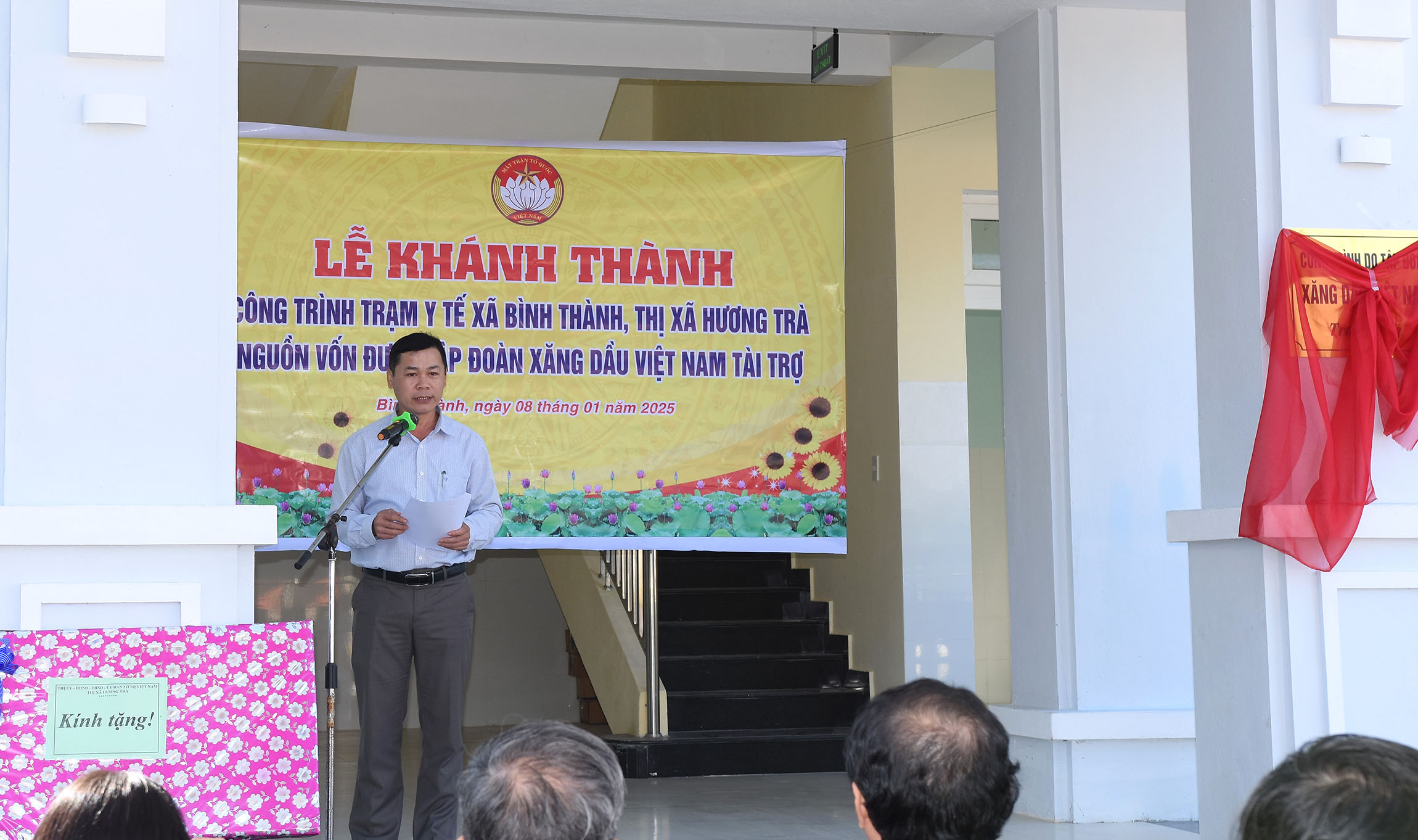 Ngày 08/01/2025 tại xã Bình Thành - thị xã Hương Trà diễn ra Lễ Khánh thành công trình trạm Y tế xã Bình Thành - thị xã Hương Trà. Tham dự lễ có lãnh đạo UBMTTQVN, UBND, TTYT thị xã Hương Trà, lãnh đạo Sở Y tế, nhà tài trợ và lãnh đạo địa phương cùng toàn thể nhân viên trạm Y tế xã Bình Thành cùng tham dự.