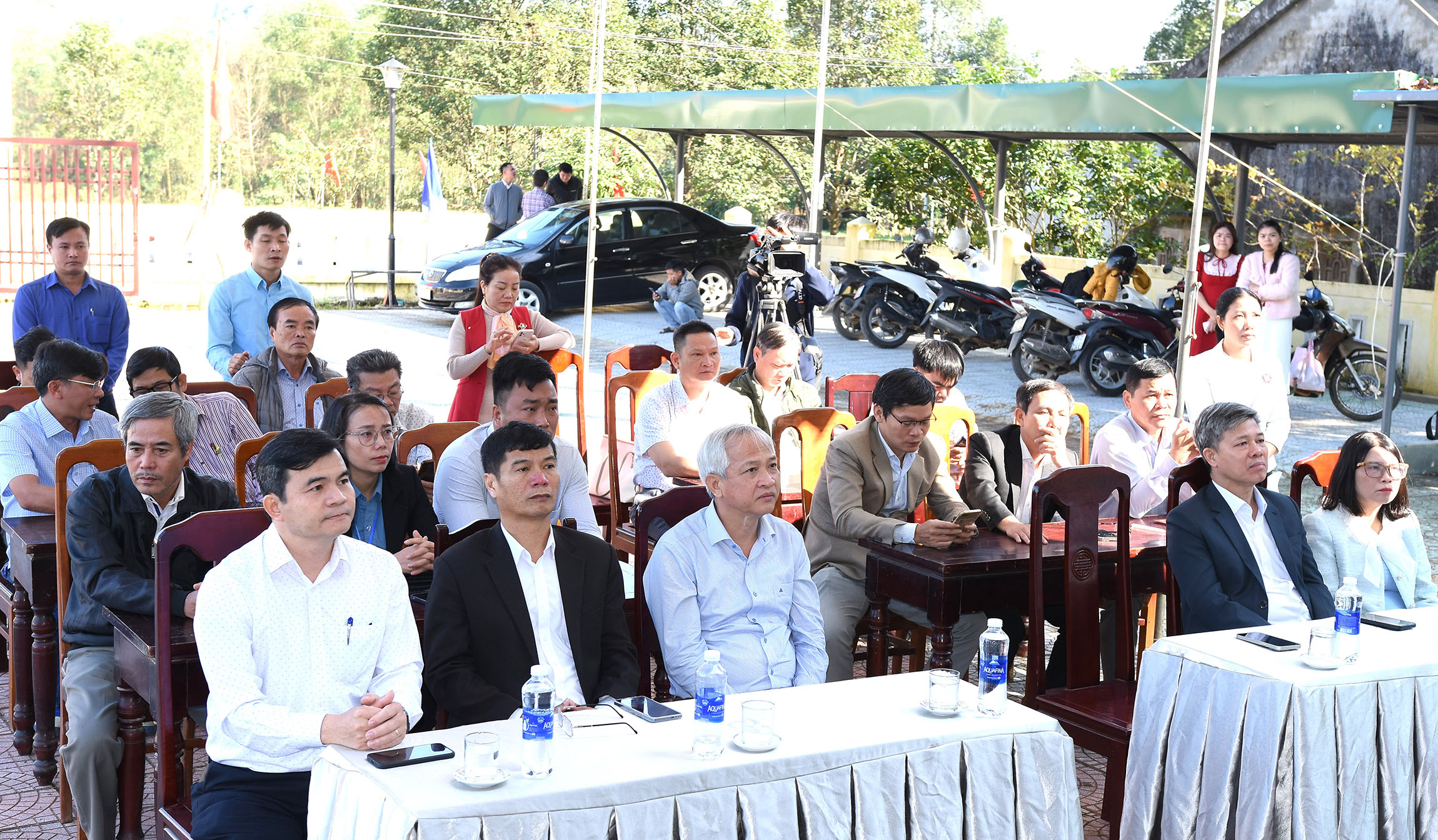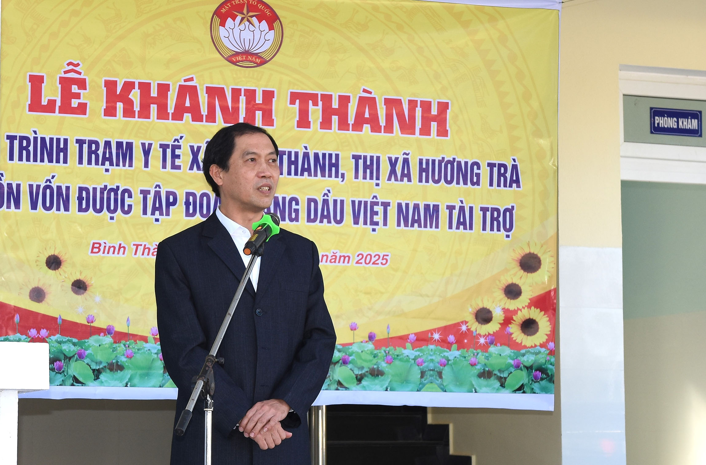 Lãnh đạo UBMTTQVN thị xã Hương Trà và lãnh đạo xã Bình Thành phát biểu khai mạc và cảm ơn nhà tài trợ.