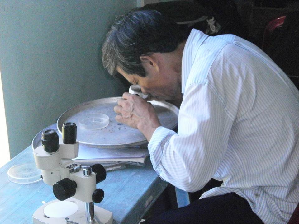 Cán bộ khoa KST-CT định loại muỗi tại thực địa