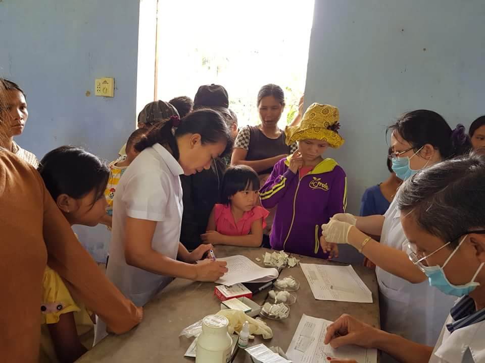 Cán bộ khoa KST-CT khám và lấy lam máu xét nghiệm cho nhân dân vùng sốt rét xã Thượng Quảng-huyện Nam Đông- tỉnh Thừa Thiên Huế