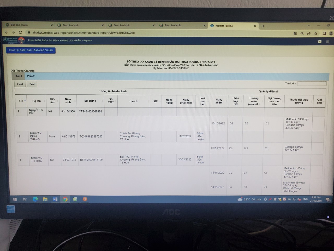 1. Danh sách quản lý, theo dõi điều trị bệnh nhân Đái tháo đường được quản lý tại Trạm Y tế, số bệnh nhân mới phát hiện qua phần mềm Báo cáo bệnh không lây nhiễm đã được Viện Pasteur Nha Trang cung cấp.