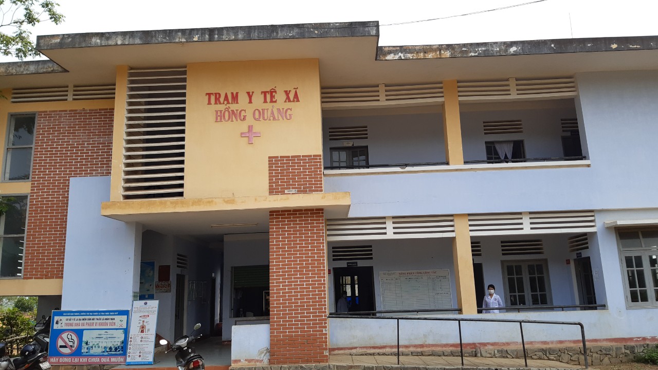 Trạm Y tế Hồng Quảng có 06 cán bộ, trung bình khám 360-500 lượt người/ tháng, chất thải lây nhiễm phát sinh trong tháng 2,0 – 2,5 kg, chất thải thông thường 1,5kg/ tháng. Trạm đã phân loại chất thải y tế tại nơi phát sinh và thời điểm phát sinh, có bao bì, dụng cụ, thiết bị lưu chứa chất thải y tế nhưng số lượng chưa đầy đủ, chưa có biểu tượng theo quy định. Chất thải y tế lây nhiễm sắc nhọn được thu gom sau đó lưu vào hầm bê tông, chất thải y tế lây nhiễm không sắc nhọn đốt tại Trạm Y tế, chất thải y tế thông thường đốt tại Trạm và bỏ tại bãi rác chung của xã. Trạm Y tế hiện chưa có hệ thống xử lý nước thải y tế tập trung theo quy định, nước thải tự thấm vào hầm rút của trạm.