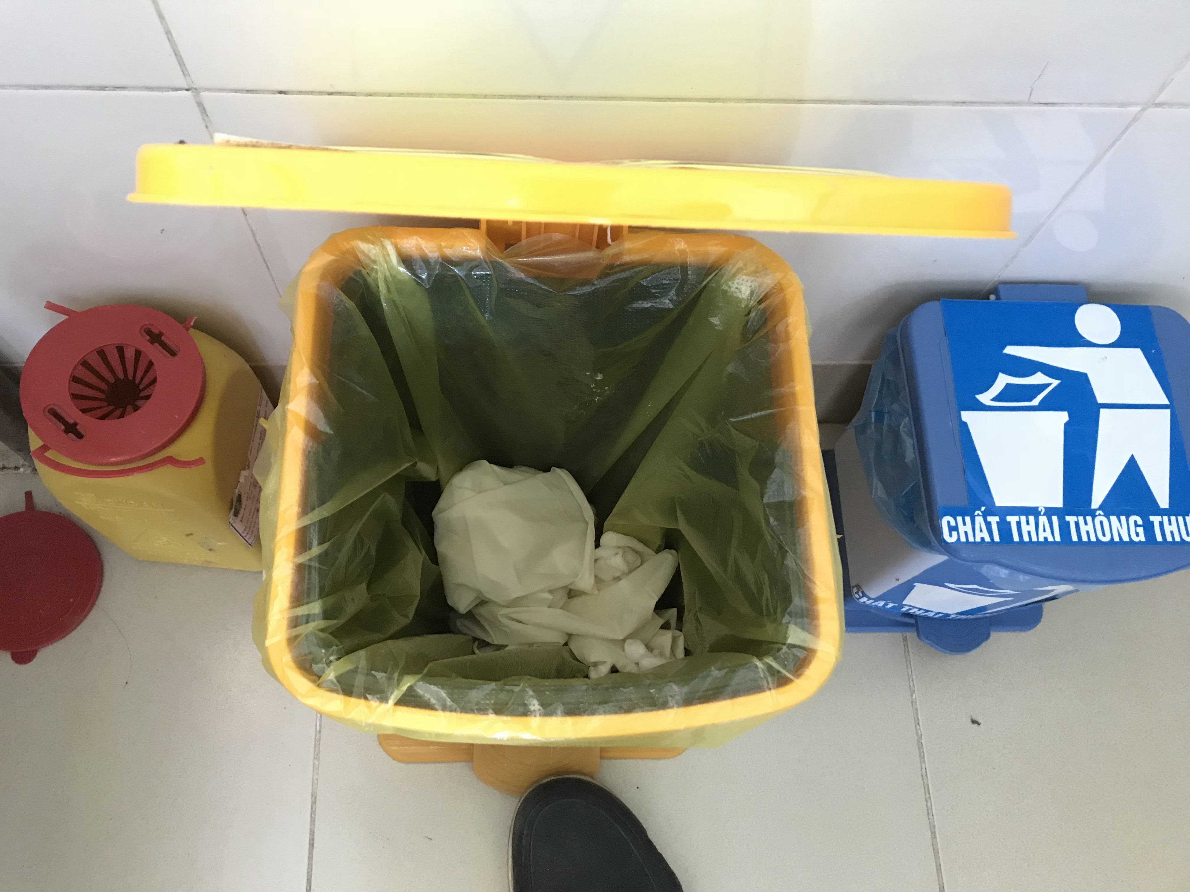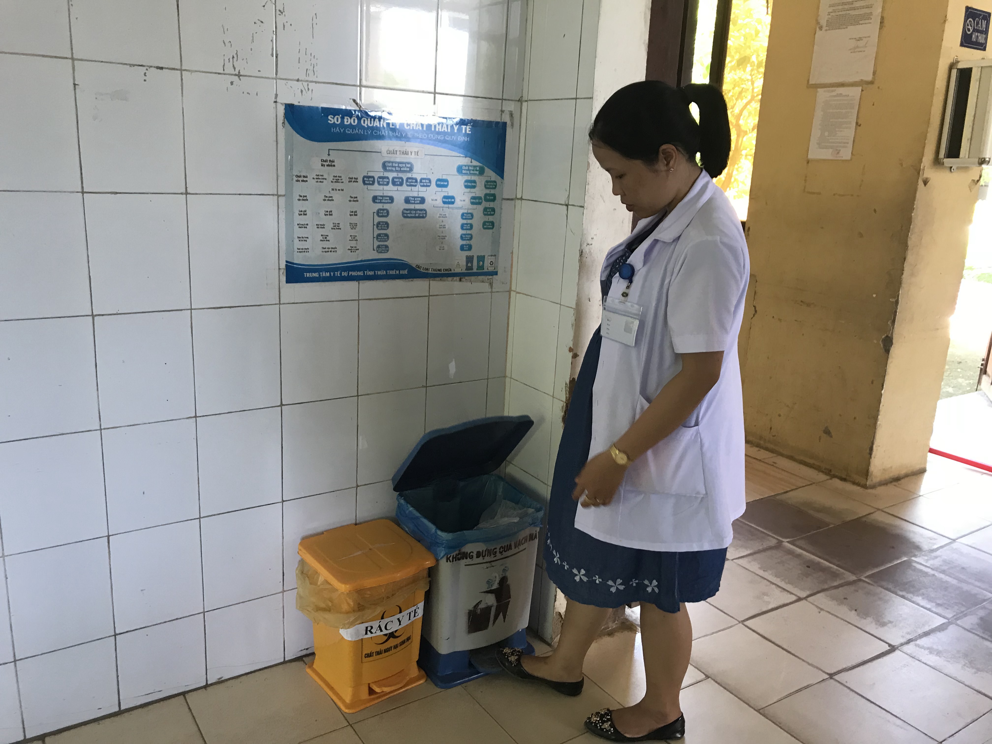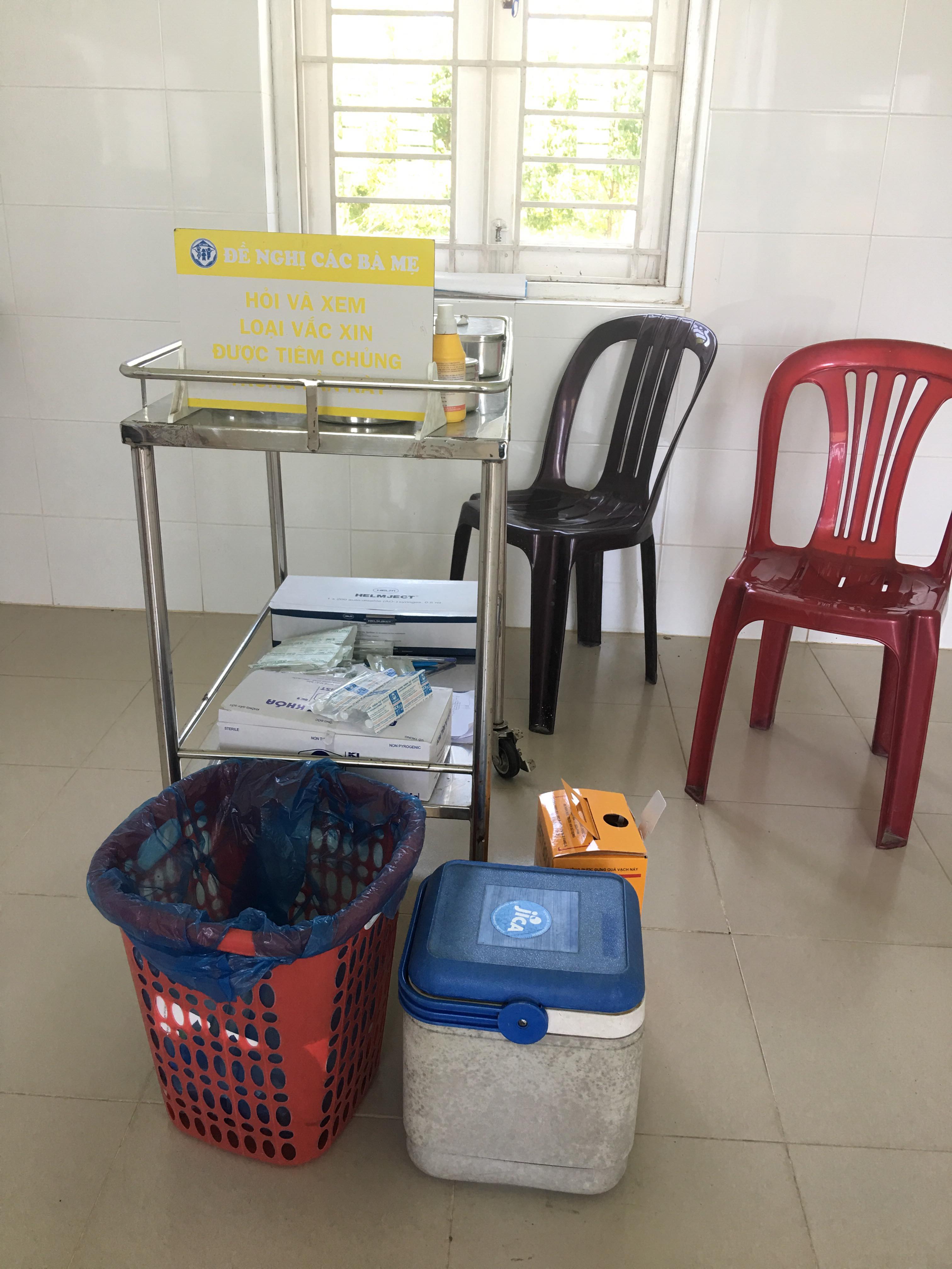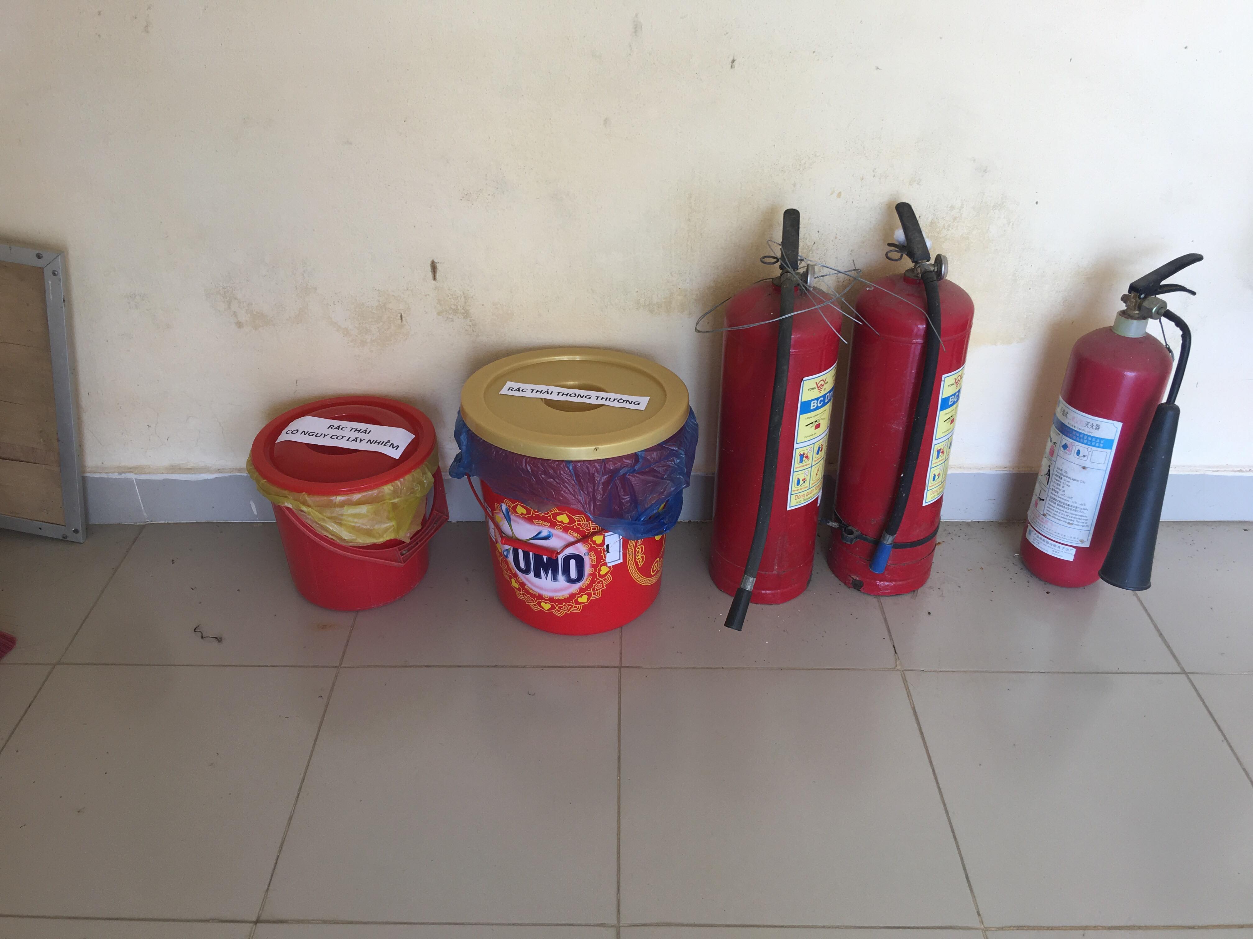 Kiểm tra thùng chứa chất thải lây nhiễm tại TYT Vinh Thanh