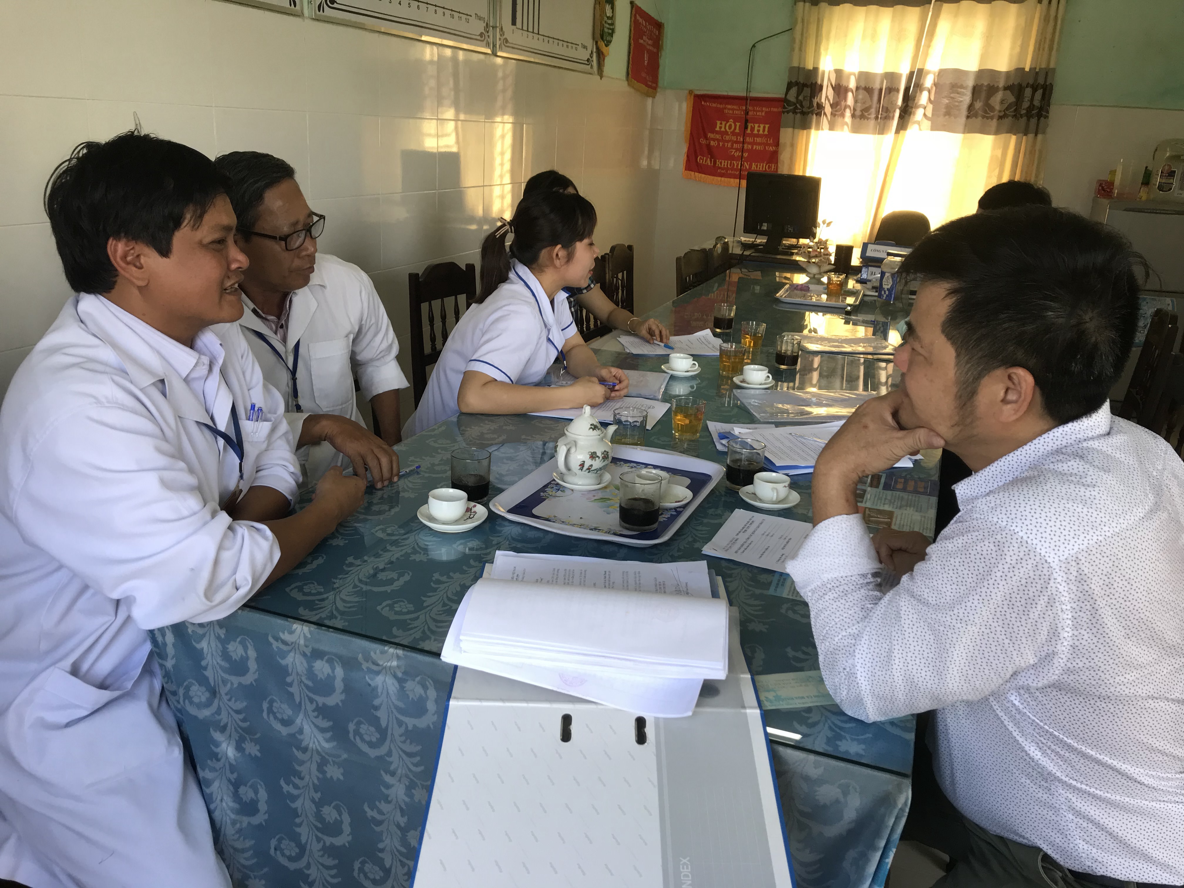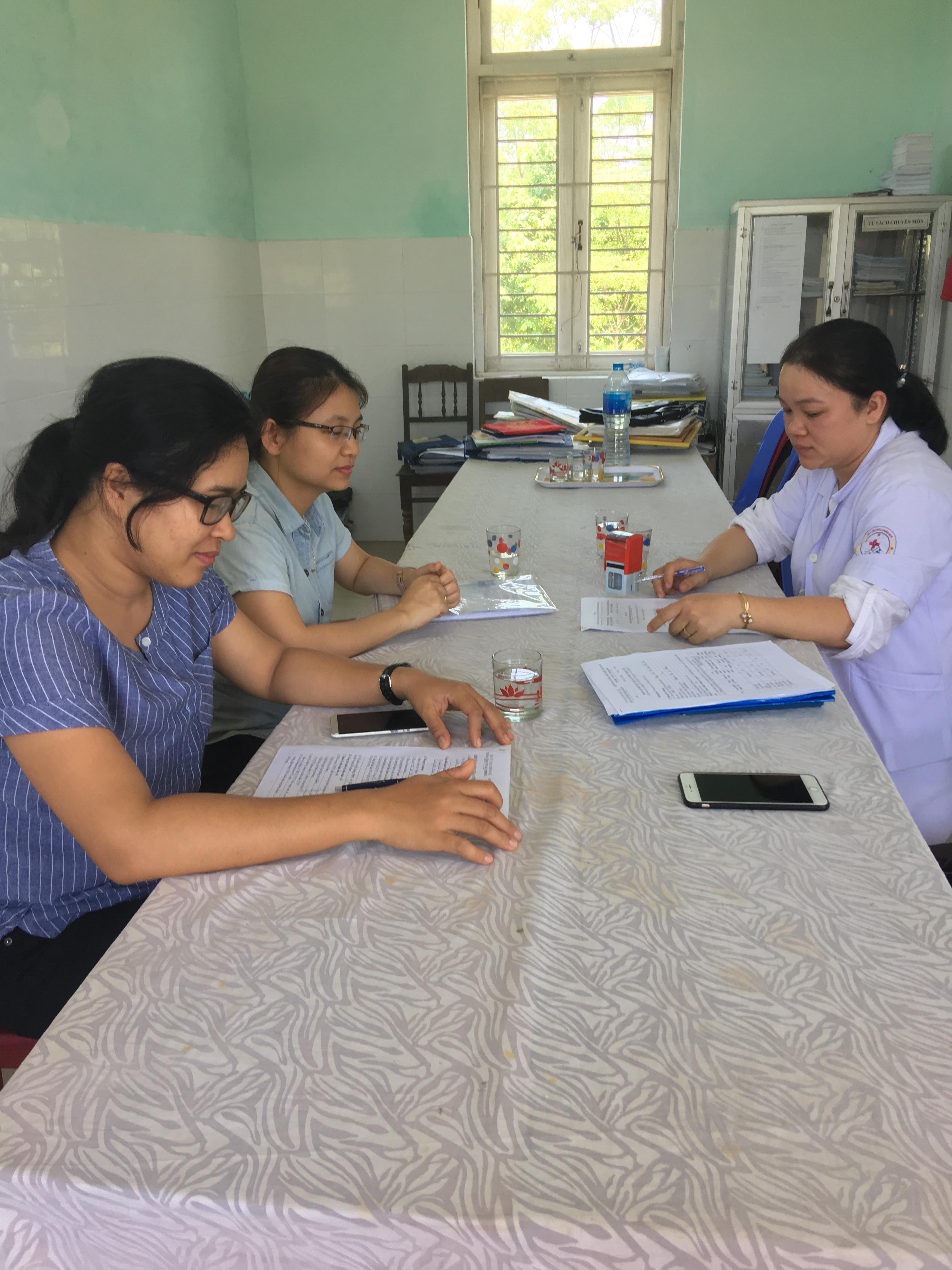 Cán bộ TTKSBT tỉnh làm việc với cán bộ TYT xã Vinh Thanh, huyện Phú Vang