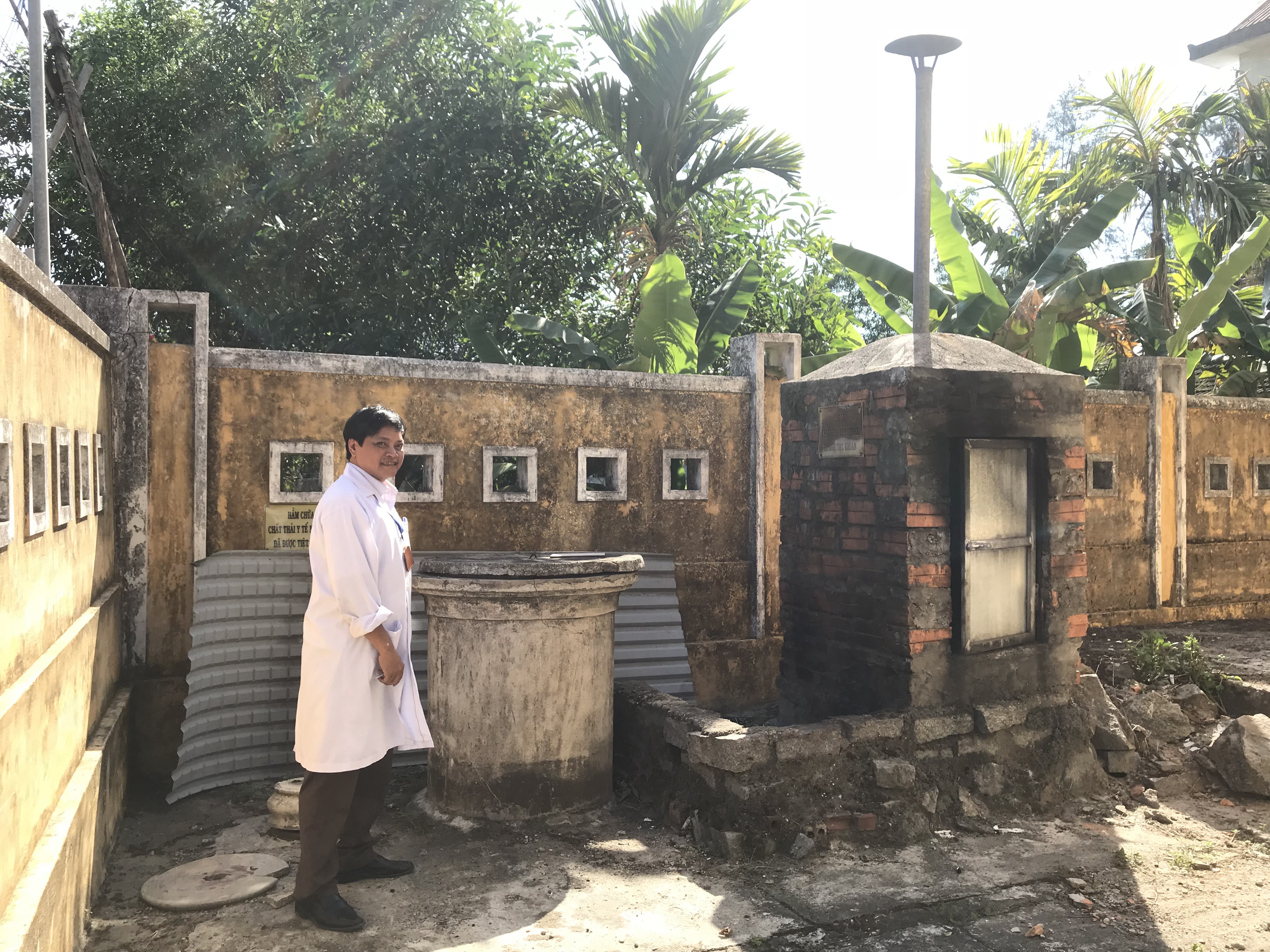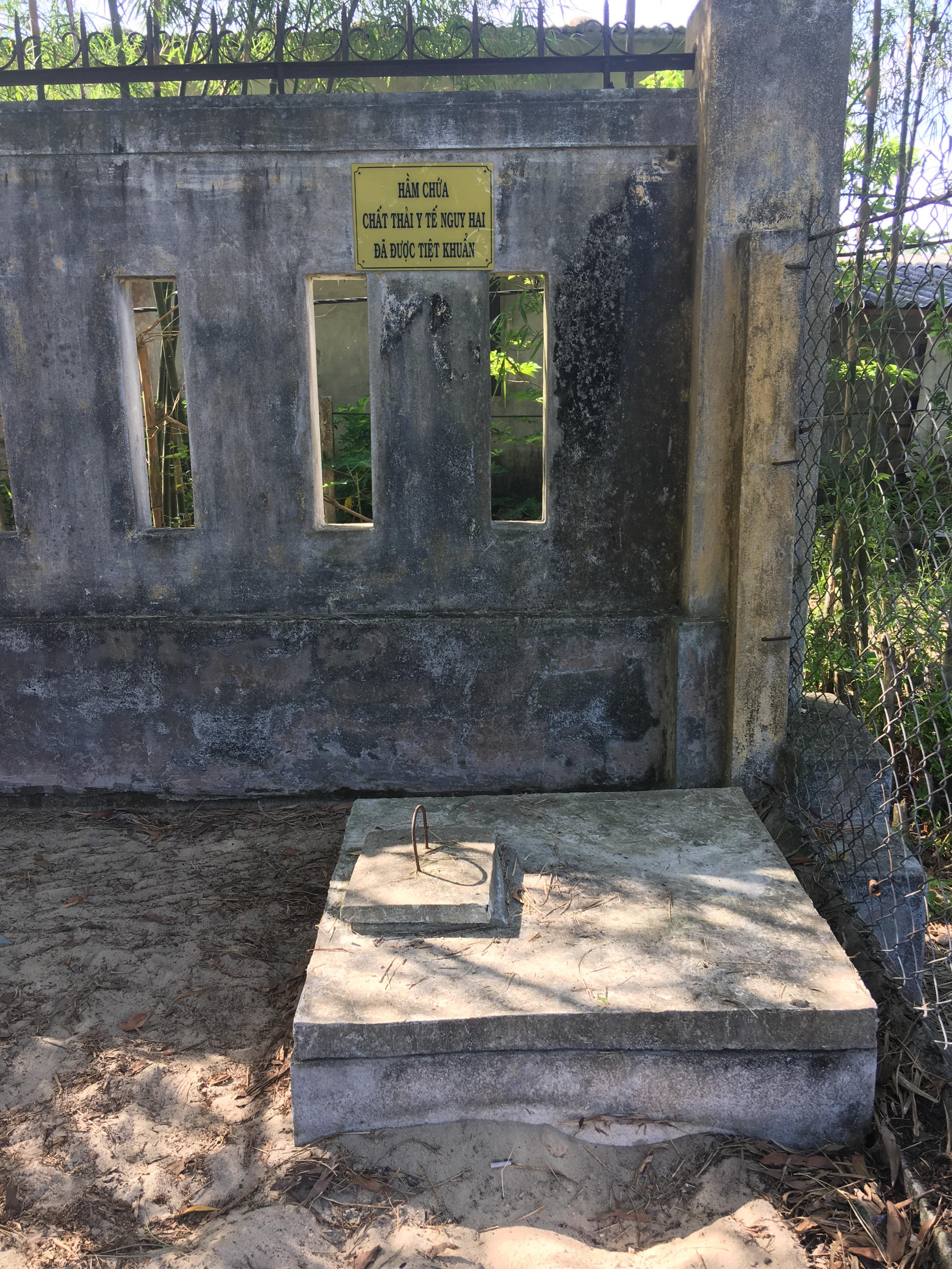 Hầm bê tông chứa chất thải lây nhiễm sắc nhọn tại trạm y tế Vinh Xuân.