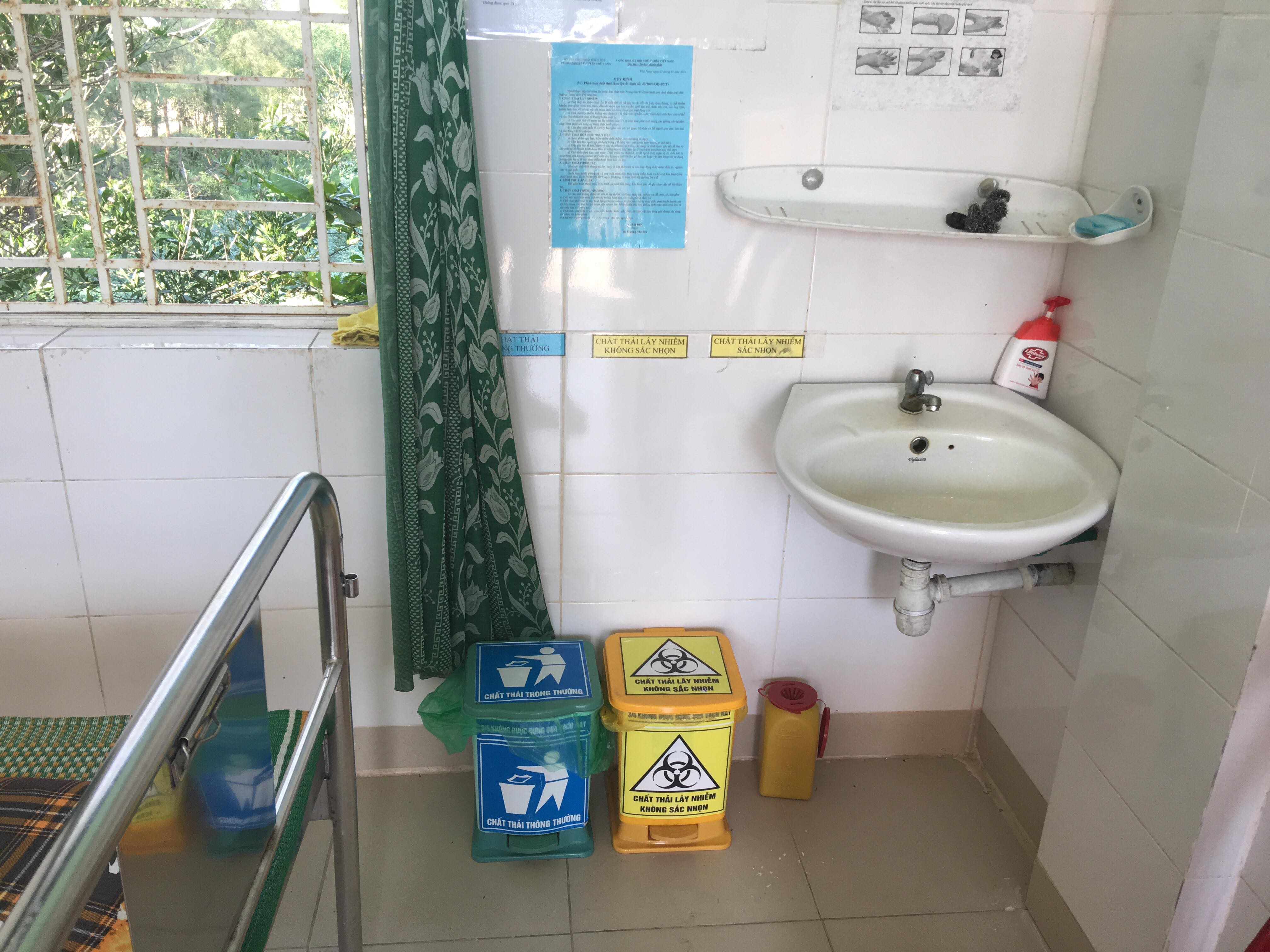 Phân loại chất thải y tế tại phòng điều trị trạm y tế xã Vinh Xuân.