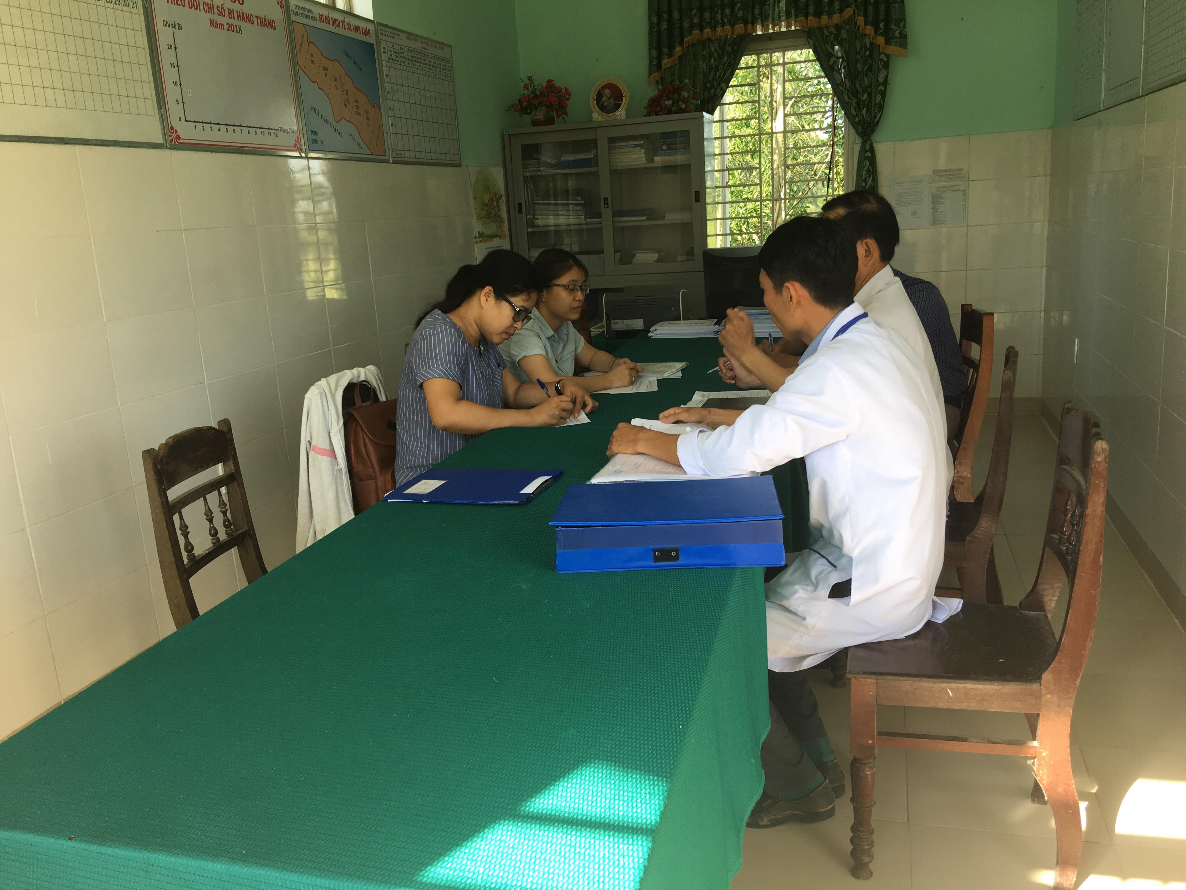 Cán bộ TTKSBT tỉnh làm việc với cán bộ TYT xã Vinh Xuân, huyện Phú Vang