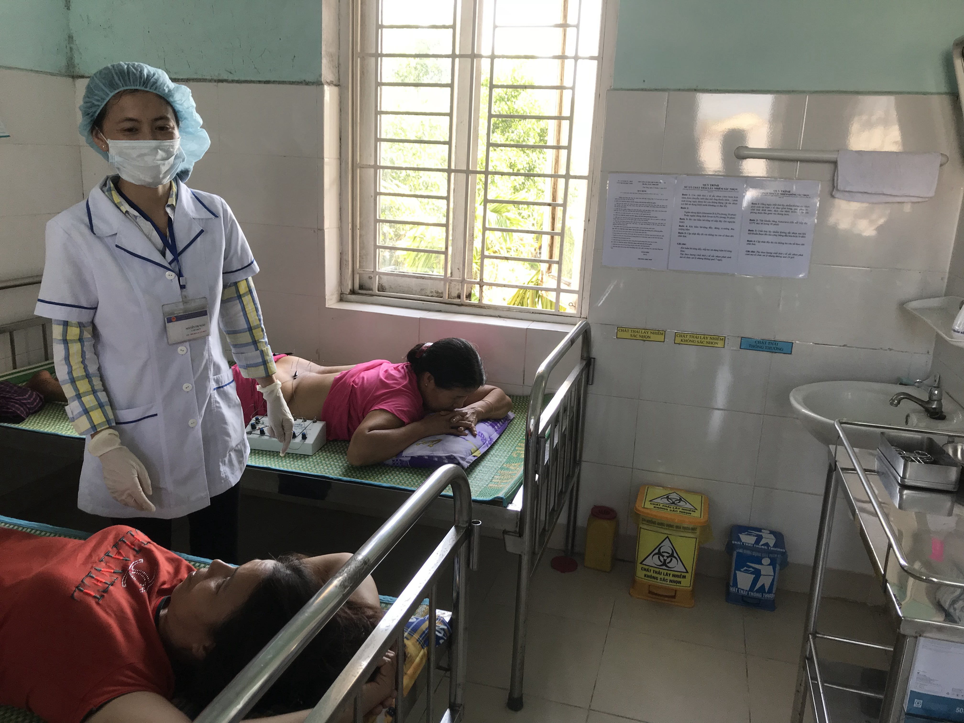 Kiểm tra công tác phân loại chất thải y tế tại phòng châm cứu Đông y, TYT Vinh Thanh